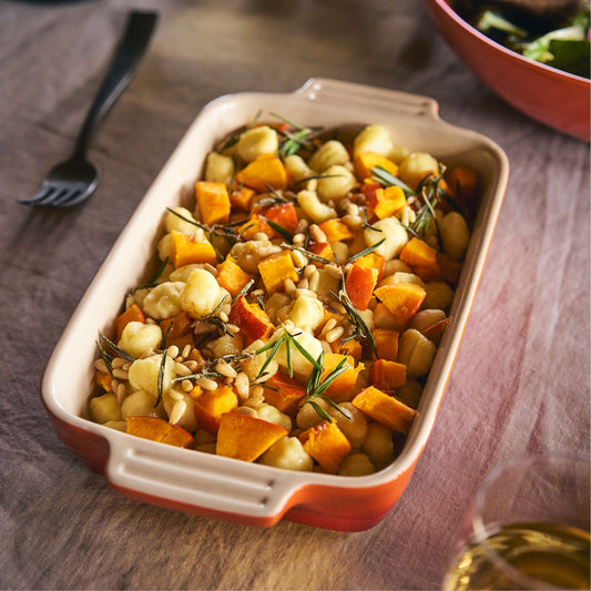 Mit einer Auflaufform von Le Creuset kannst Du eine Vielzahl köstlicher Gerichte zubereiten. Bereite herzhaftes Kartoffelgratin, saftige Lasagne oder deftige Aufläufe zu. Auch für süße Kreationen wie fruchtige Cobbler oder knusprige Crumbles sind die Formen ideal geeignet. Ihre gleichmäßige Wärmeverteilung sorgt dafür, dass Deine Gerichte perfekt gelingen und sich gleichmäßig bräunen.