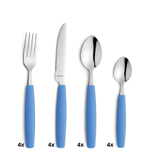 Unsere 16-teiligen Bestecksets bieten eine vollständige Ausstattung für 4 Personen. Jedes Set enthält 4 Menümesser, 4 -gabeln, 4 Löffel und 4 Teelöffel. Mit diesem Set kannst Du Deine Gäste stilvoll bewirten und ein harmonisches Esserlebnis für 4 Personen schaffen.