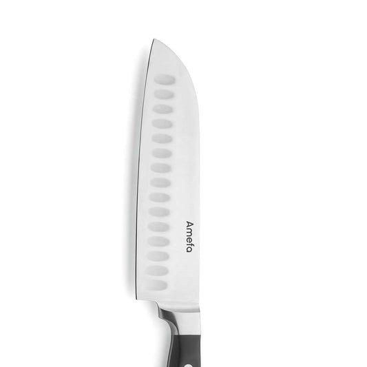 Ein Santokumesser ist ein unverzichtbares Werkzeug für alle, die in der Küche Wert auf höchste Präzision und Vielseitigkeit legen. Ursprünglich aus Japan stammend, überzeugt dieses Messer mit seiner extra scharfen Klinge und einer optimalen Balance. Das Santokumesser hat eine breitere, kürzere Klinge mit einer flachen Schneide und einer nahezu geraden Spitze und ist dadurch ideal für das Schneiden von Fleisch, Fisch und Gemüse. Das Santokumesser ermöglicht müheloses Schneiden, Hacken und Wiegen und gehört zu den wichtigsten Messern in jeder Küche.