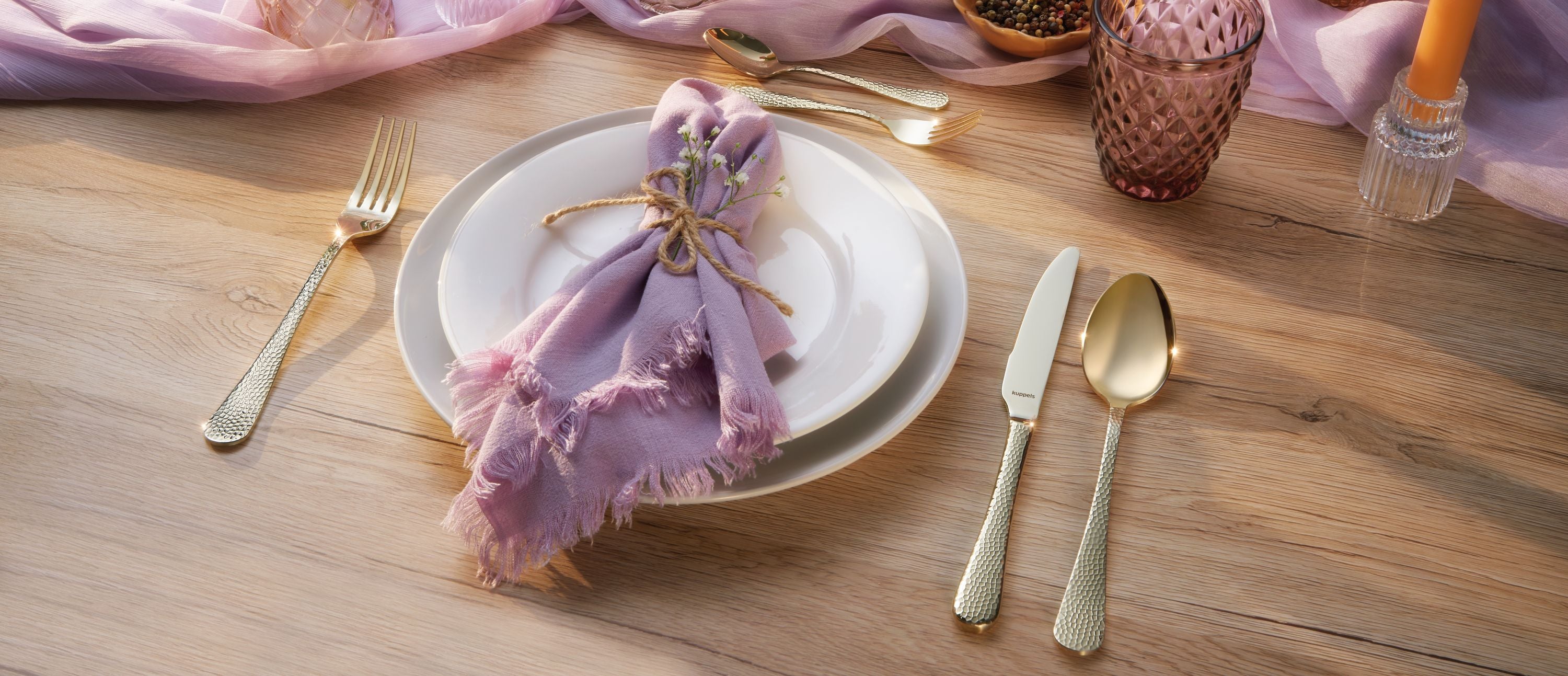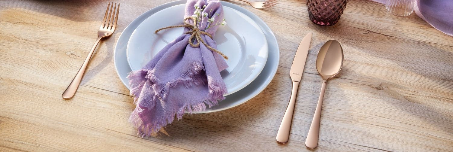 Discover stainless steel cutlery with satin and high-gloss finishes. Or our absolute eye-catchers - cutlery with PVD coating in colors like black, gold, champagne, or copper.