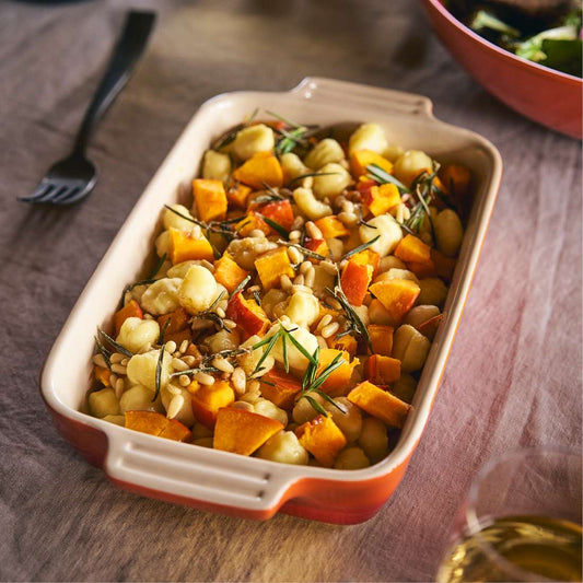 With a Le Creuset casserole dish, you can prepare a variety of delicious dishes. Prepare hearty potato gratin, juicy lasagna, or savory casseroles. These dishes are also ideal for sweet creations like fruity cobbler or crispy crumbles. Their even heat distribution ensures your dishes turn out perfectly and brown evenly.
