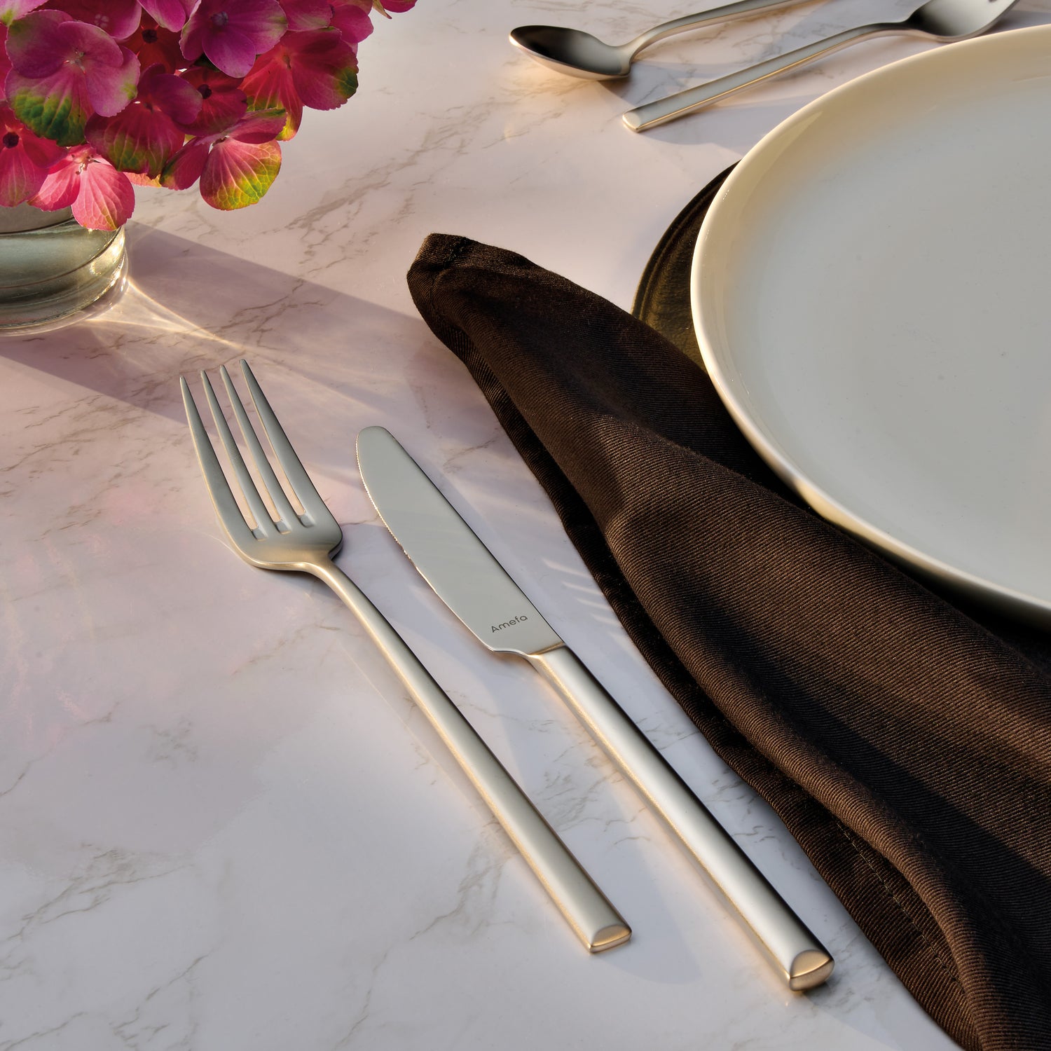 Discover stainless steel cutlery with satin and high-gloss finishes. Or our absolute eye-catchers – cutlery with PVD coating in black, gold, champagne, or copper.