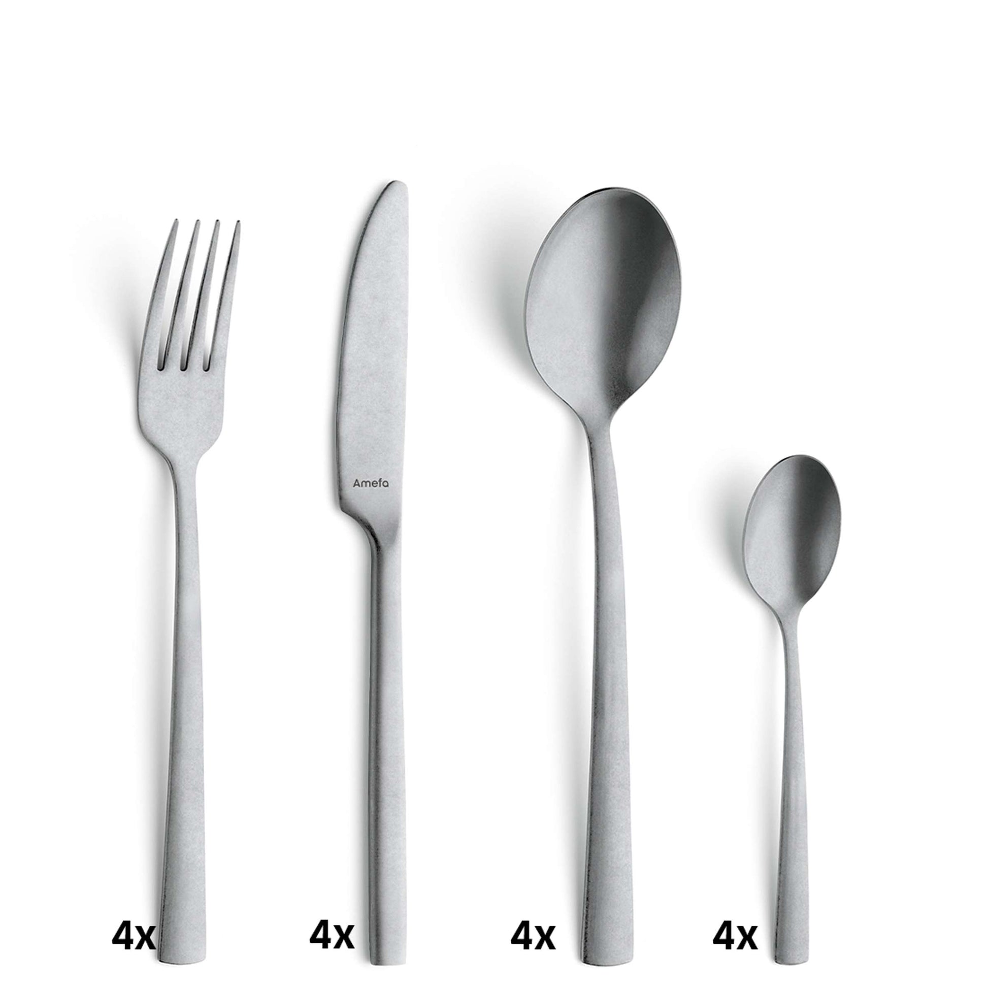 - Contents: 4 coffee spoons, 4 dinner forks, 4 dinner spoons, 4 dinner knives