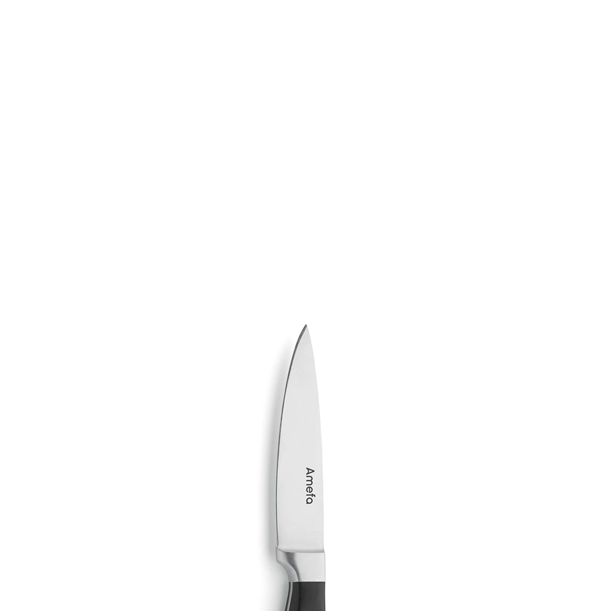 Amefa's premium cutting knife features a classic black riveted handle and an extremely sharp 3Cr14 blade steel blade. For professional cuts and comfortable cutting.