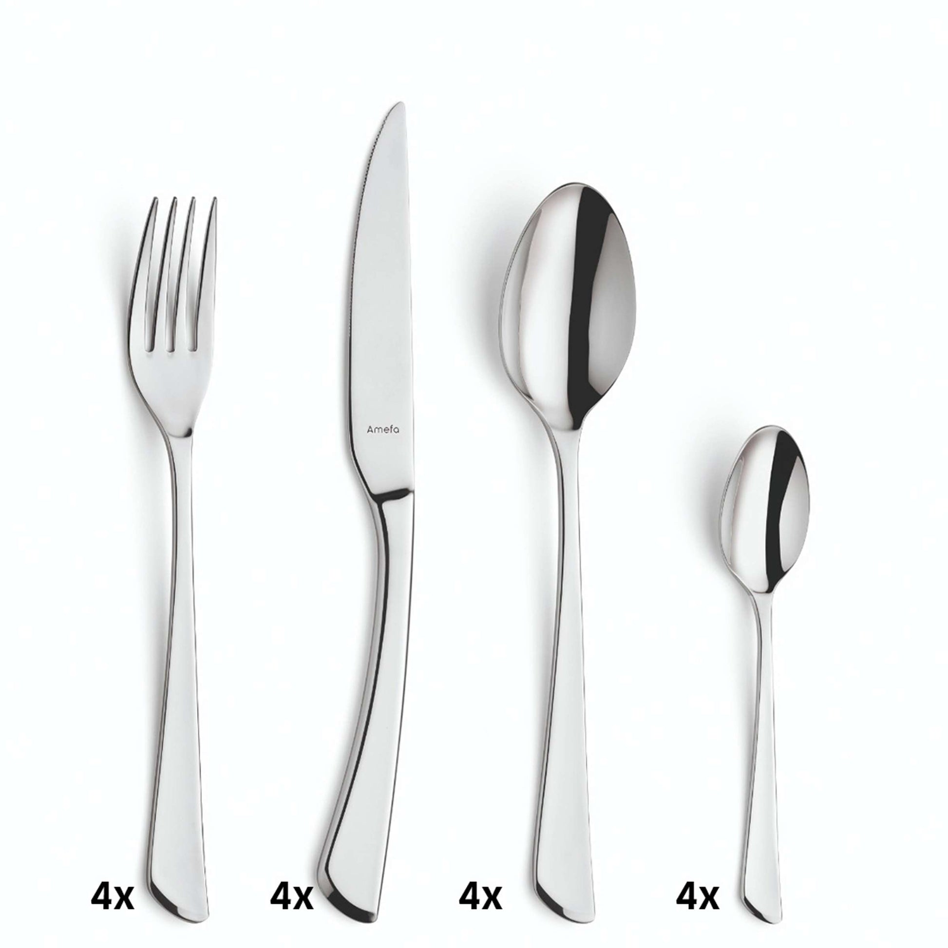 - Contents: 4 coffee spoons, 4 dinner forks, 4 dinner spoons, 4 dinner knives