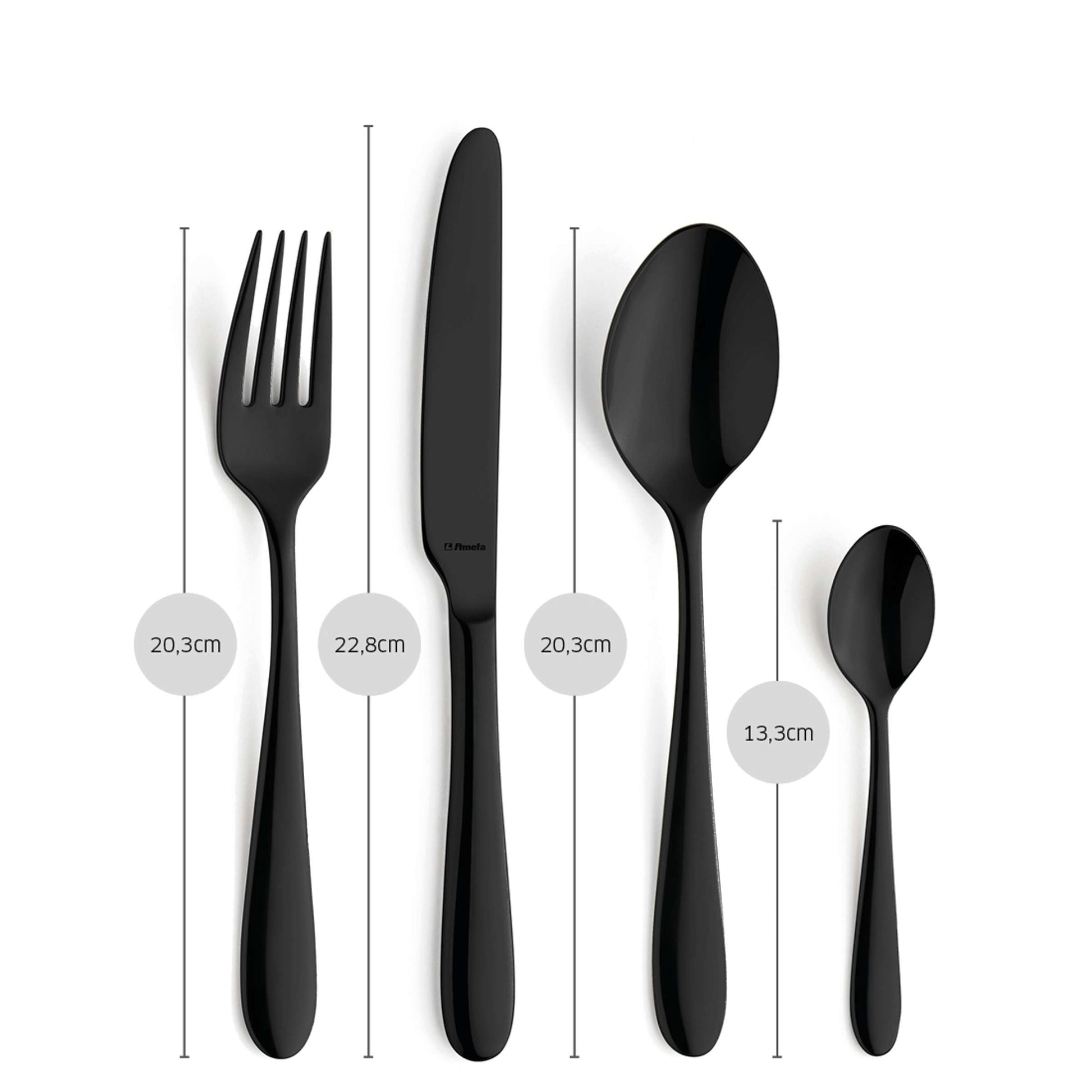 The harmonious, black design and rounded handles make the Oxford cutlery a real eye-catcher at any table. The cutlery set combines simple elegance with a glossy black PVD finish. The soft lines make the cutlery a daily companion for all meals. Why shouldn't your cutlery be as stylish as your meals themselves? Crafted from 18/10 stainless steel with a safe PVD coating, it comes in a stylish wood-effect cutlery box.