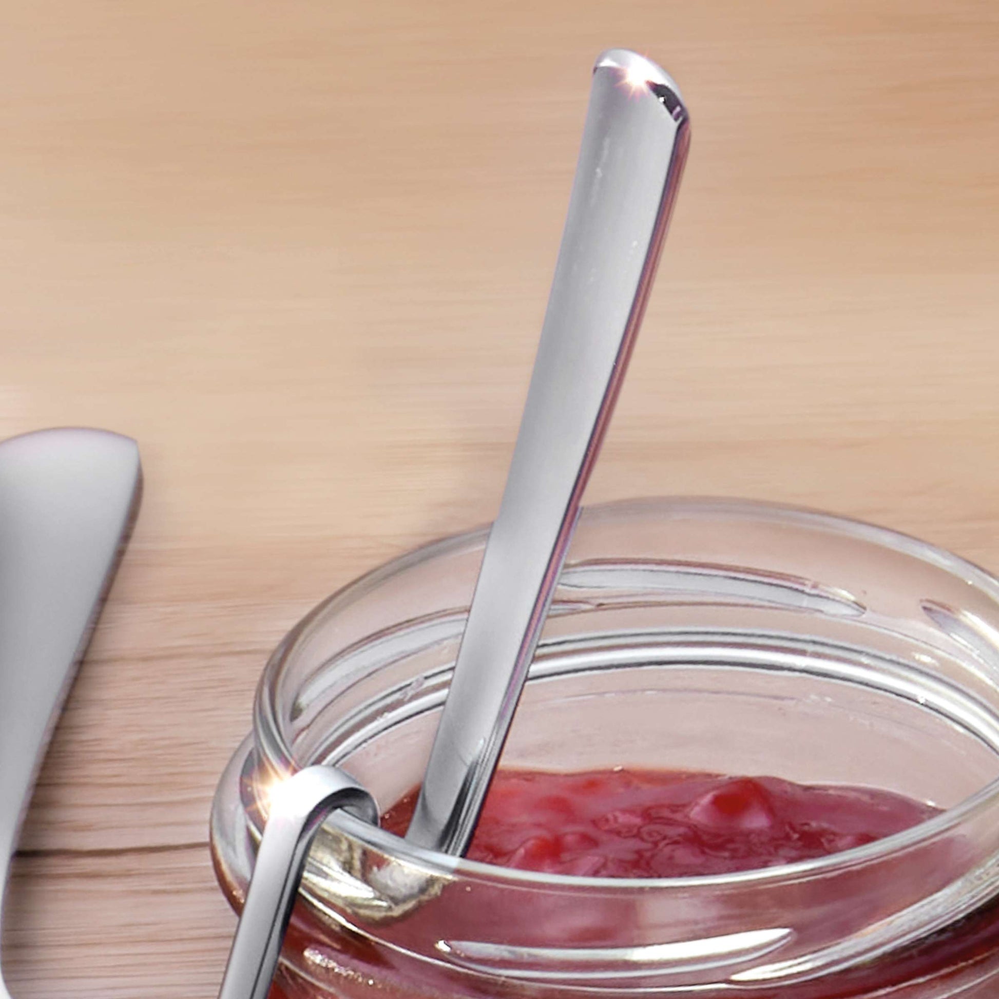 The SELECTION jam spoon from Kuppels is the clever solution for a clean breakfast table. Thanks to its extra-long handle with a loop, the spoon stays neatly attached to the jar without smearing.