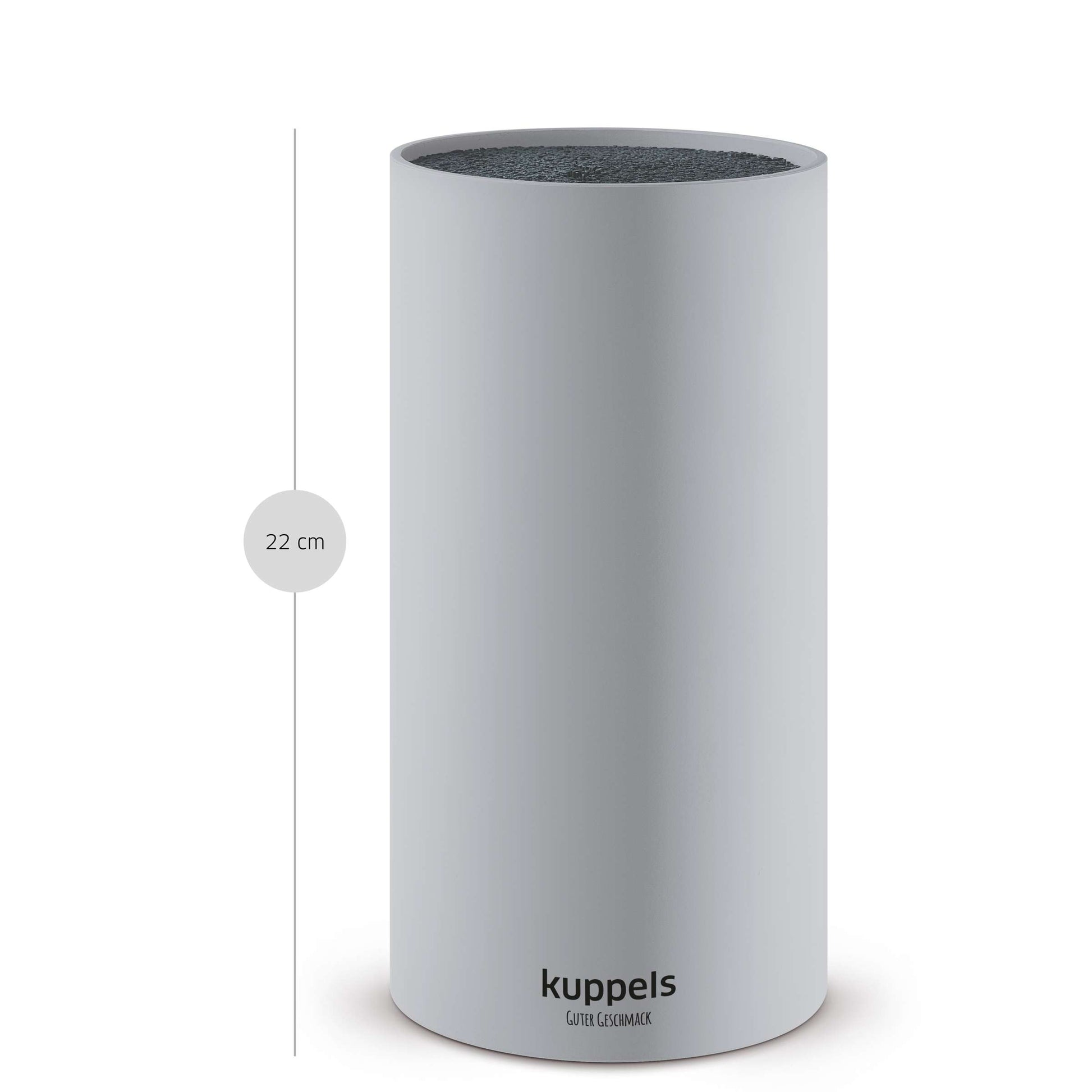 This knife block blends stylishly and discreetly into your countertop. The gray color is subtle and unobtrusive, yet adds a modern touch to the kitchen. The insert made of flexible plastic bristles protects the knife blade and stores the knives well and safely. Flexible insertion and removal of kitchen knives is possible thanks to the fine, tightly woven bristles. Suitable for 5-6 knives. Suitable for all blade types.