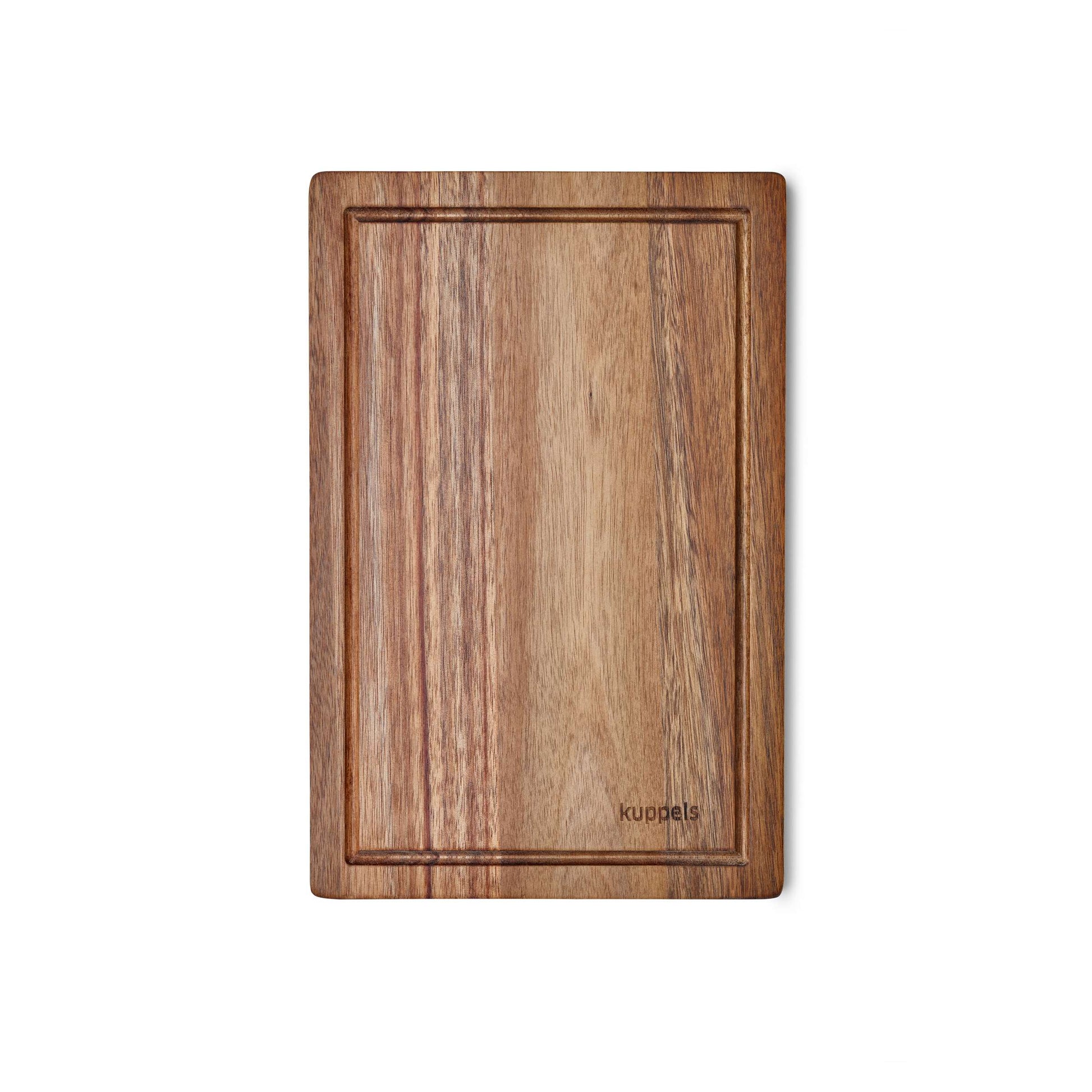 The DICE cutting board from Kuppels combines high quality with a natural look. Crafted from robust acacia wood, it offers a pleasant feel, antibacterial properties, and is particularly gentle on the blade.
