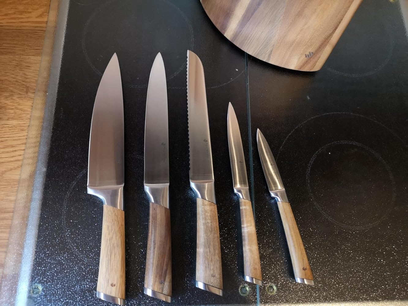 - MoV steel, acacia wood. Hand cleaning recommended. 5-piece set.