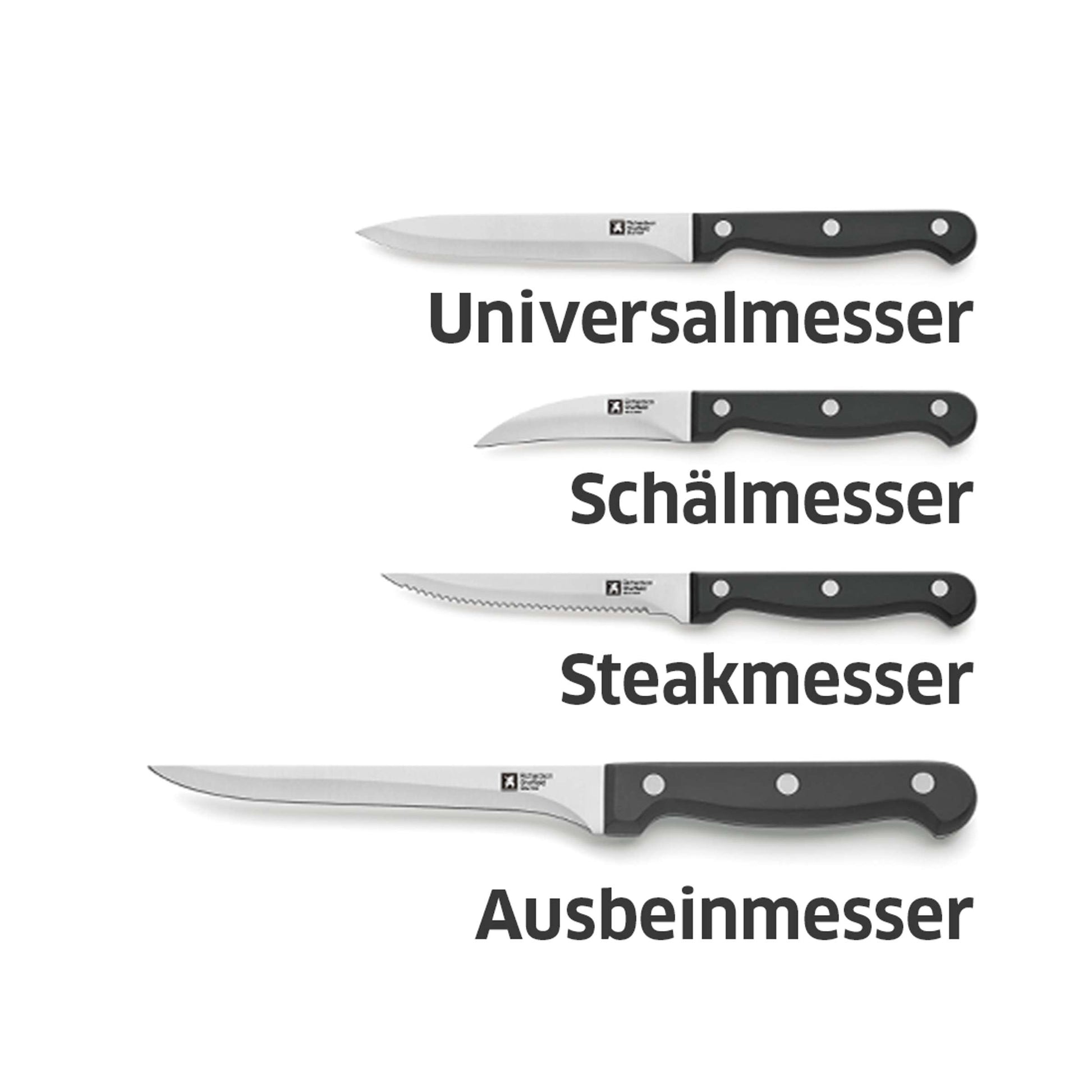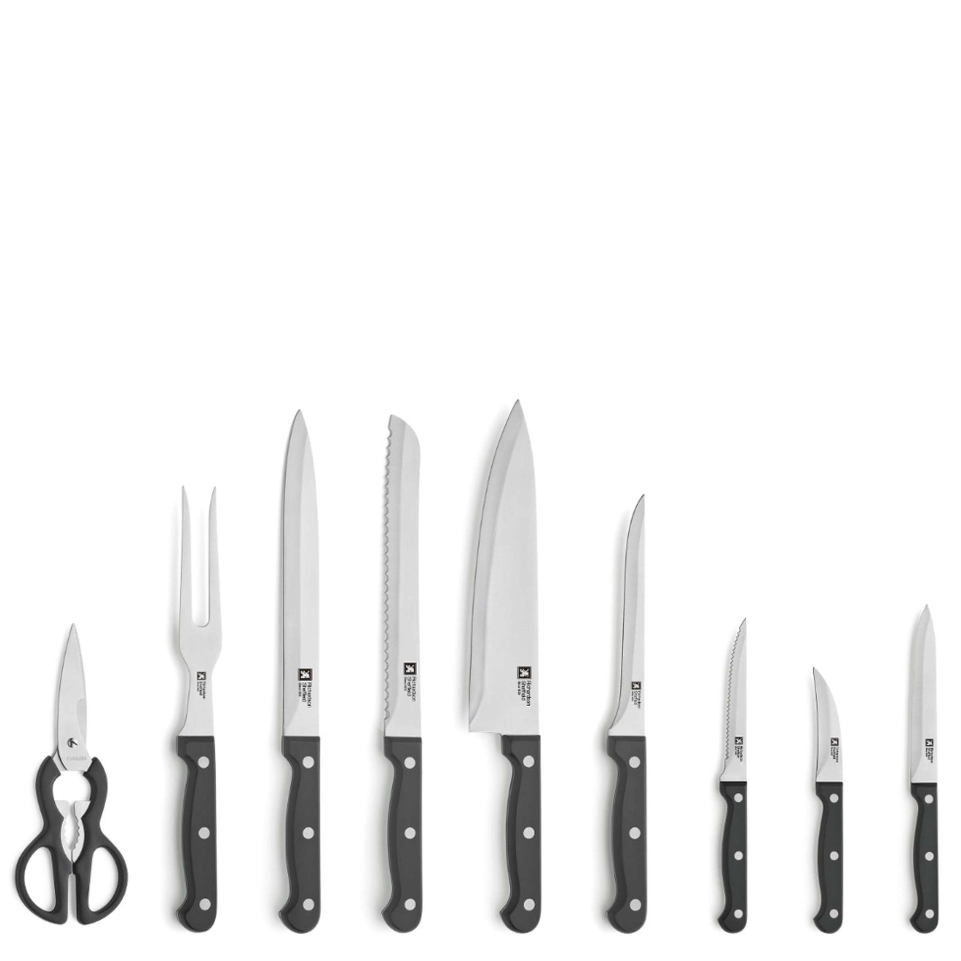 - including 7 kitchen knives: paring knife, utility knife, steak knife, chef's knife, carving knife, boning knife, bread knife, 1 pair of scissors, 1 meat fork
