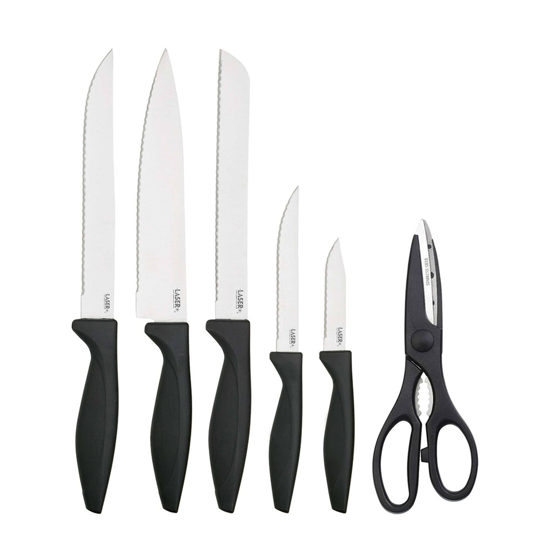Content: 6-piece : 1 knife block, 1 paring knife, 1 all-purpose knife, 1 carving knife, 1 bread knife, 1 all-purpose scissors, 1 chef's knife