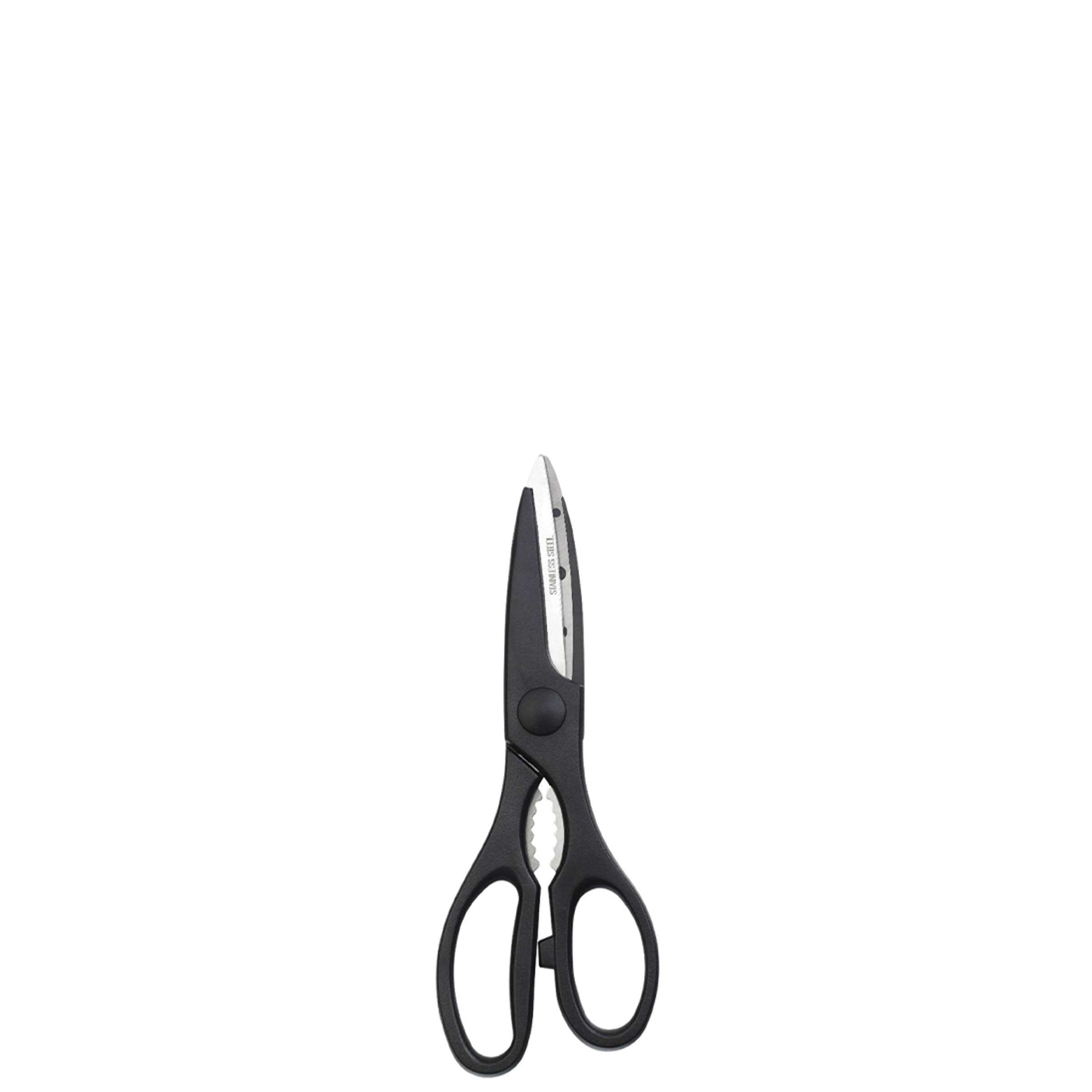 - Contents: Bread knife, chef's knife, all-purpose knife, paring knife, meat knife – plus practical scissors