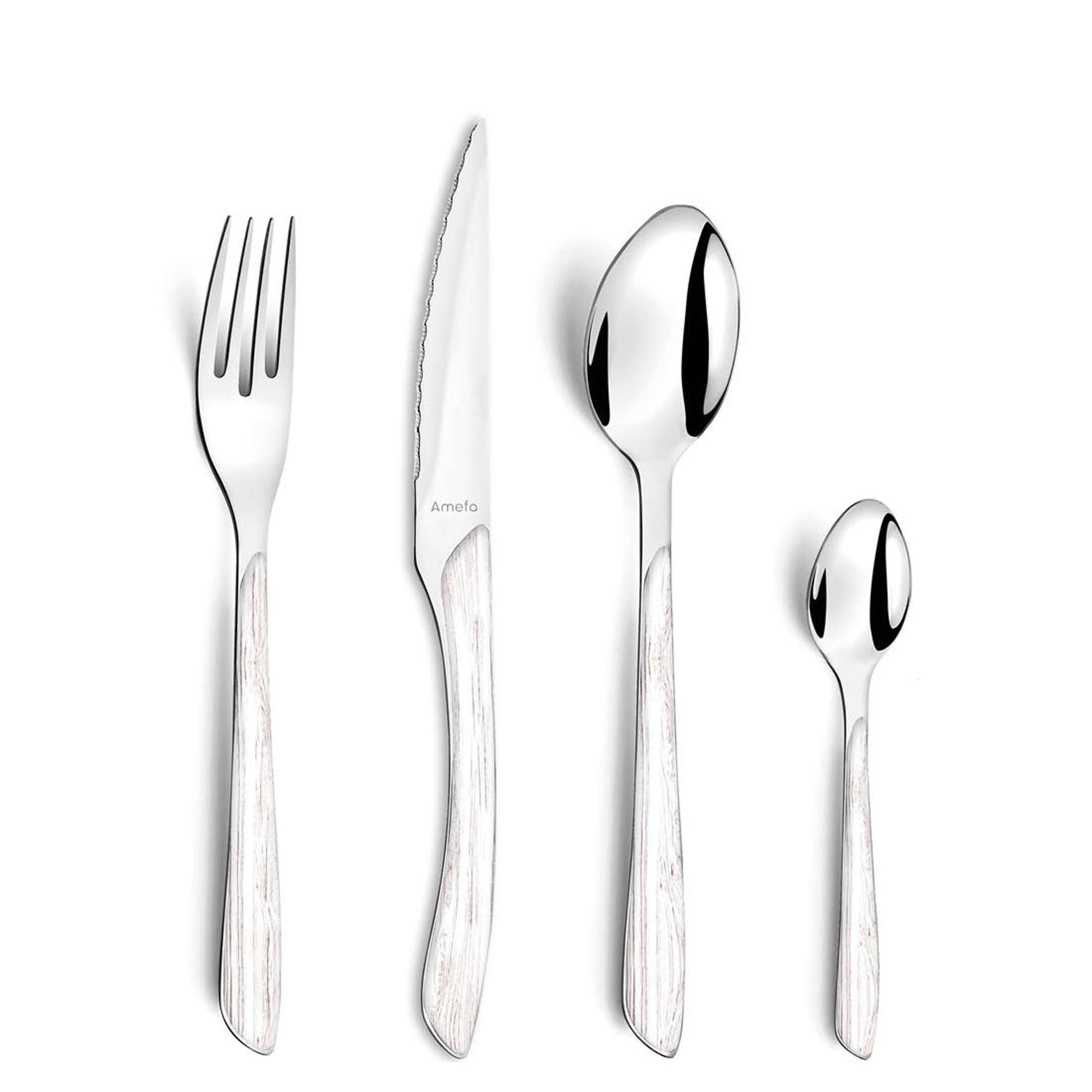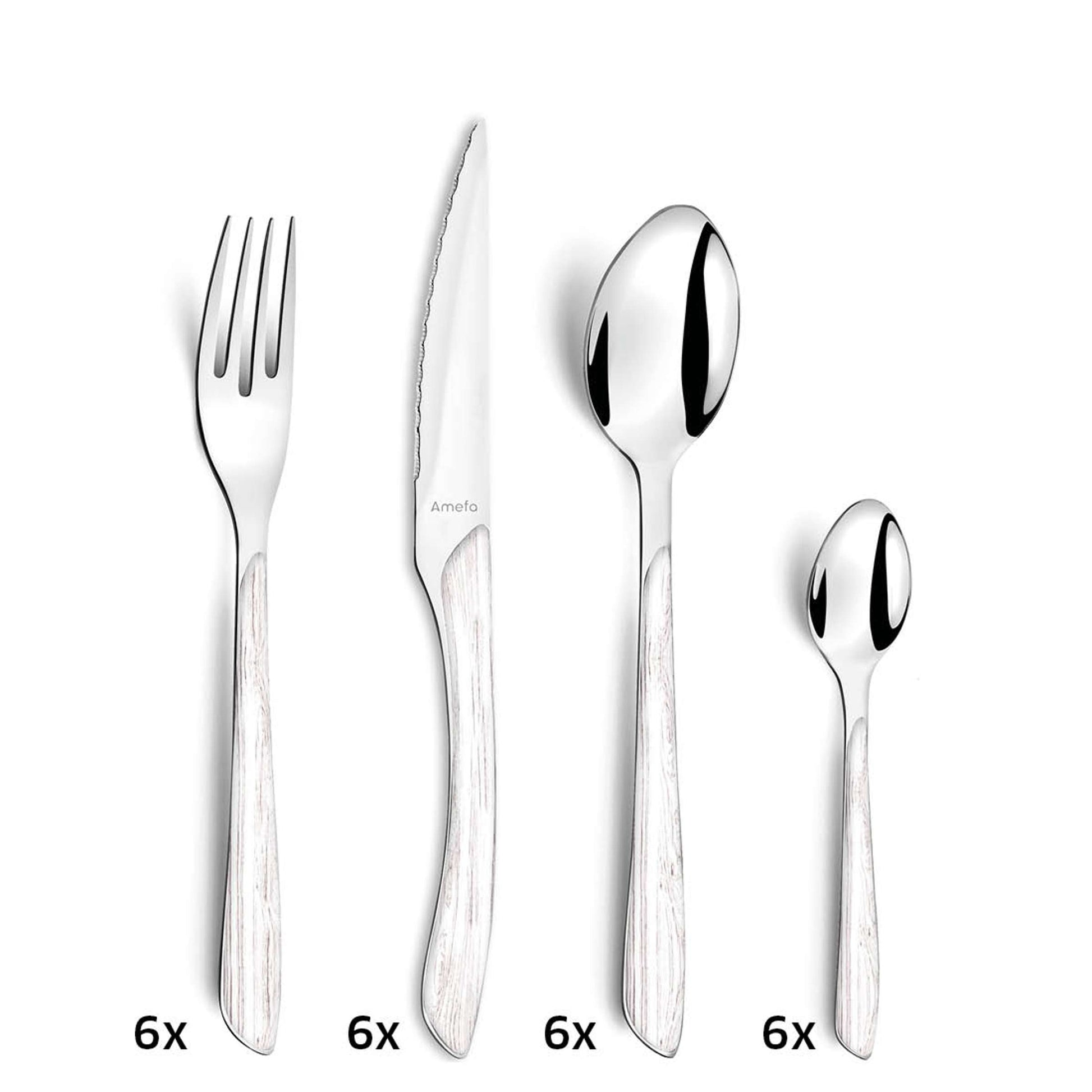 - Inhalt: 6 Kaffeelöffel, 6 Menügabeln, 6 Menülöffel, 6 Menümesser