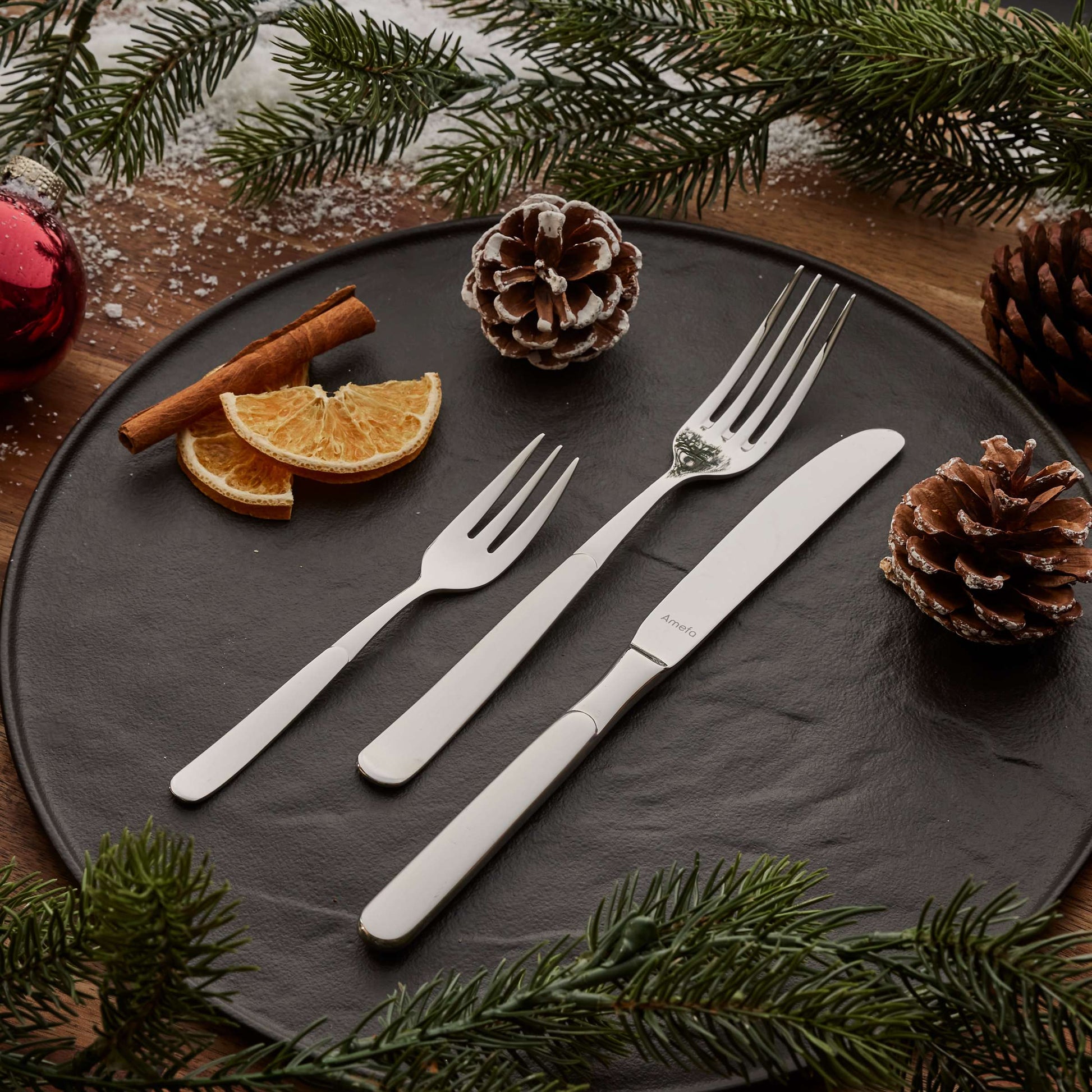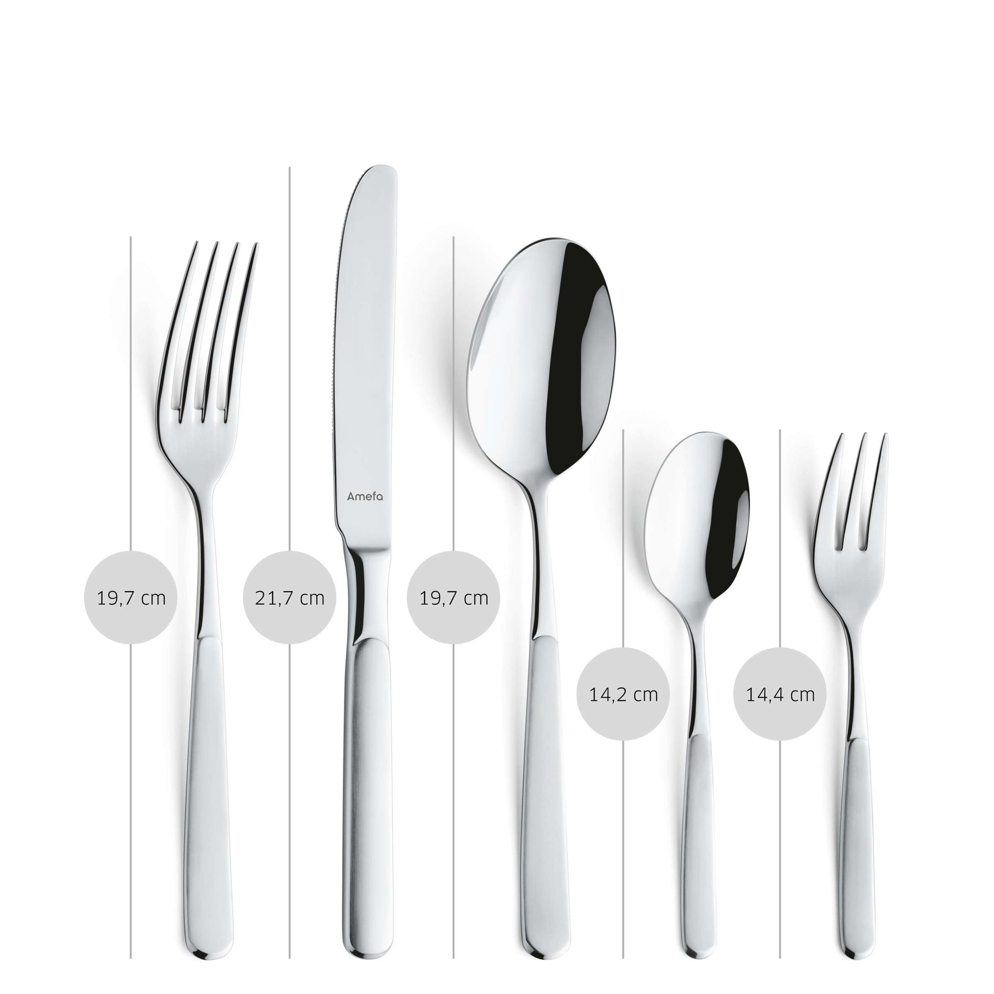 - Inhalt: 6 Kaffeelöffel, 6 Kuchengabeln, 6 Menügabeln, 6 Menülöffel, 6 Menümesser