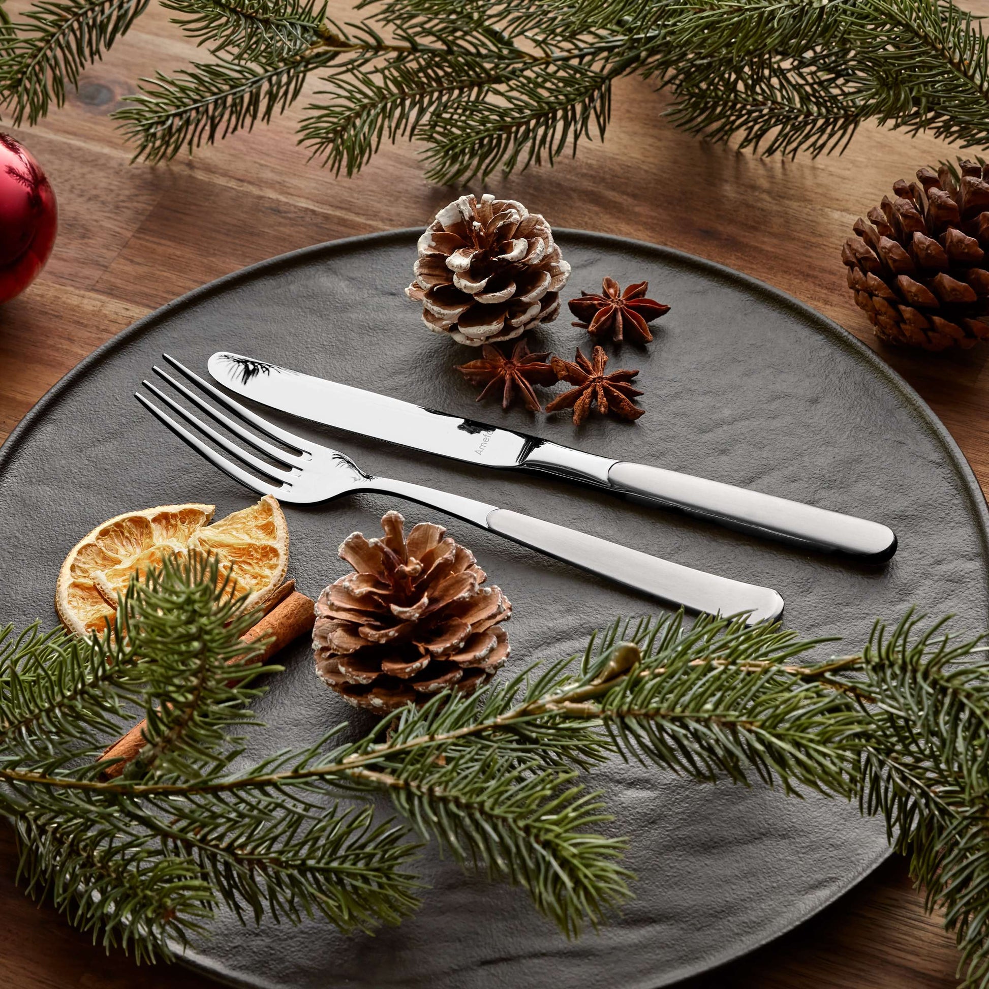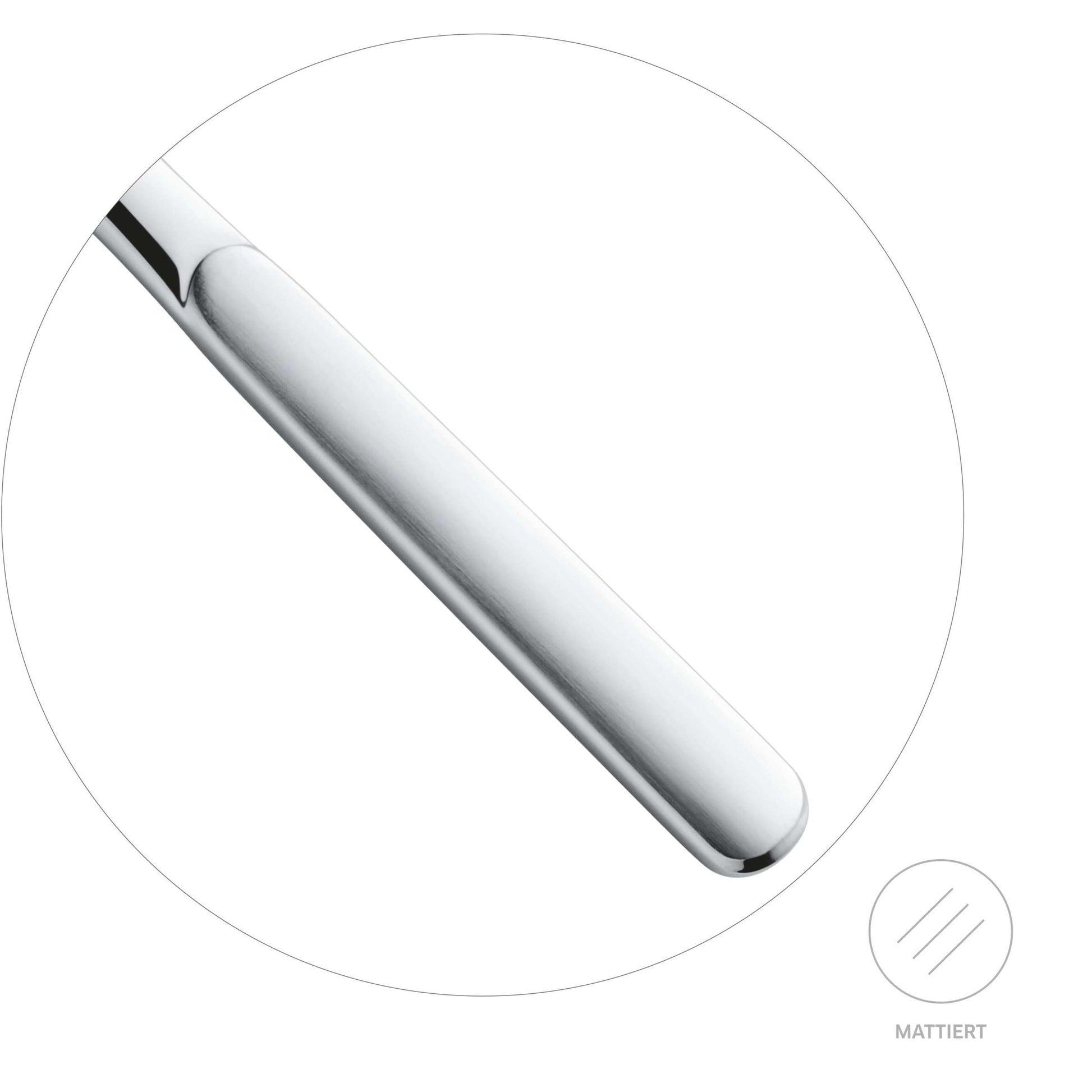 Das stilvolle Besteckset Satina kombiniert glänzendes und satiniertes Edelstahl. Die leicht erhabenen, mattierten Griffe strahlen Exklusivität aus ohne Aufdringlich zu wirken. Besondere Eleganz für den gedeckten Tisch.