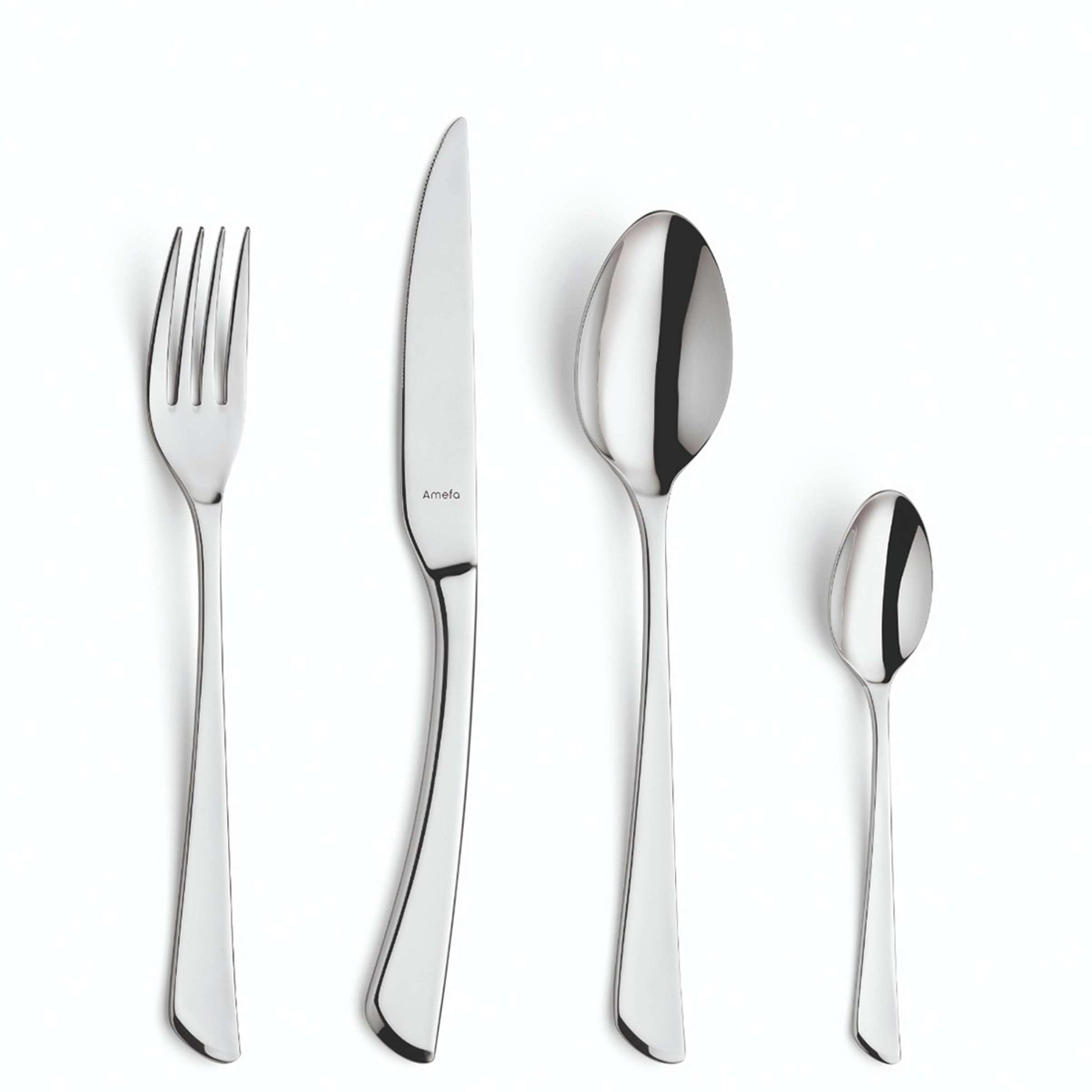 Das Modell Juno ist ein sehr schönes, zeitgenössisches Besteck mit harmonischen Rundungen und asymmetrischen Linien. Entworfen für den täglichen Gebrauch liegt es gut in der Hand und präsentiert sich in dynamischem Look. 24-teilig. 18/0 Edelstahl, hochglanzpoliert.