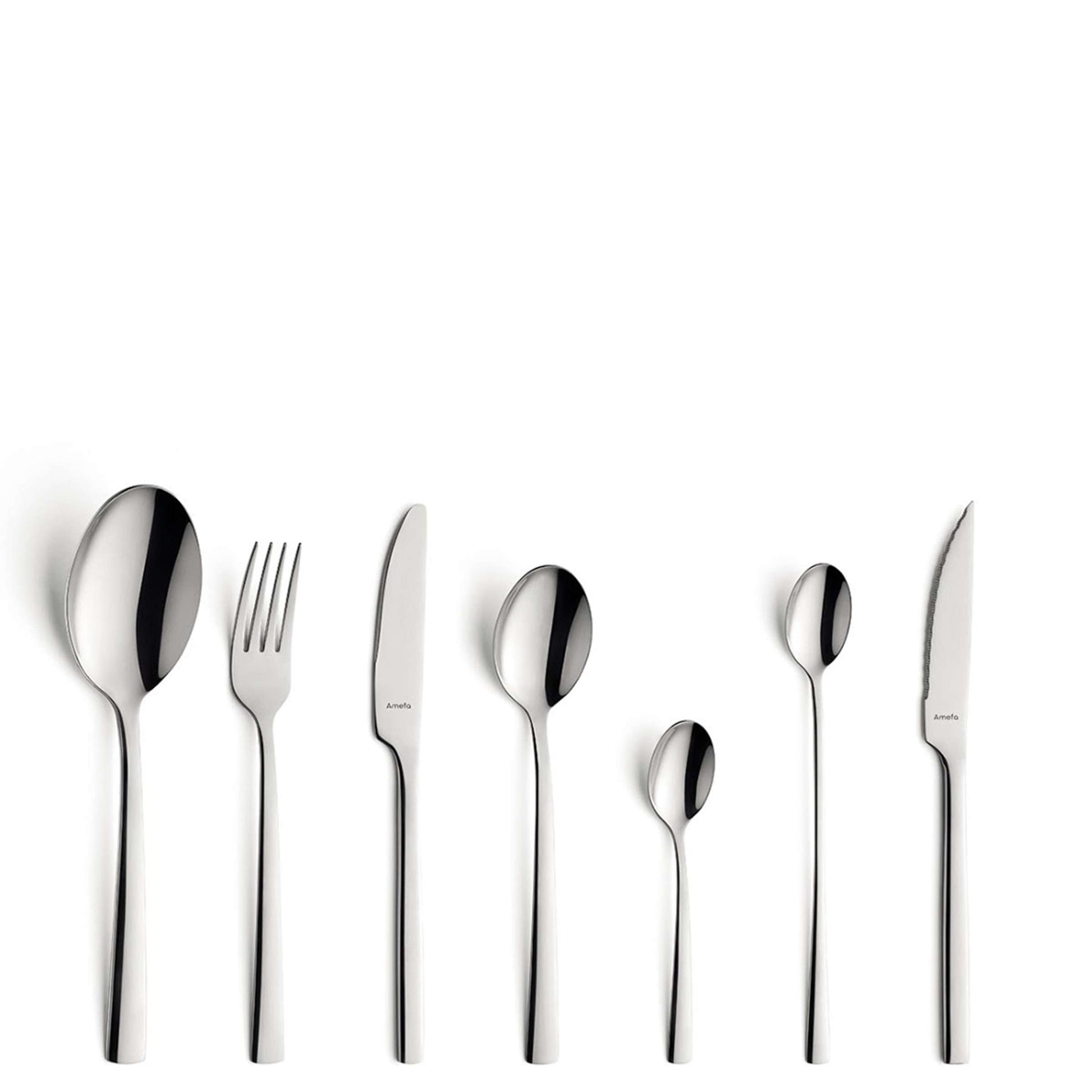 - Inhalt: 10 Kaffeelöffel, 10 Longdrink-/Latte Macchiato Löffel, 2 Servierlöffel, 6 Menügabeln, 6 Menülöffel, 6 Menümesser, 6 Steakmesser