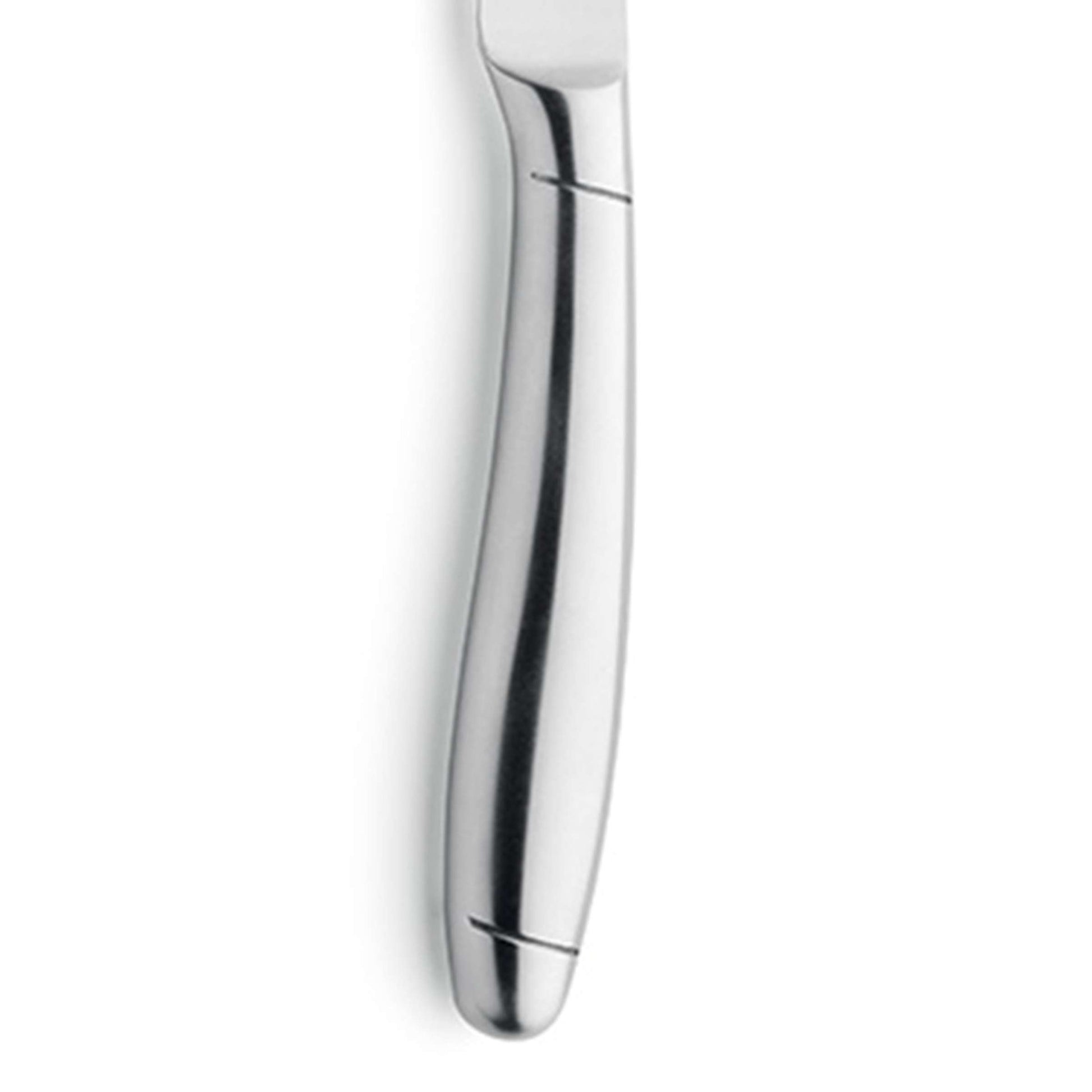 Exklusives Steakhouse-Ambiente und höchste Funktionalität treffen sich in diesem Messer: Seine extrascharfe, leicht angewinkelte Klinge schneidet mühelos und glatt durch jedes Fleisch. Der ergonomische Griff ruht sicher in der Hand.