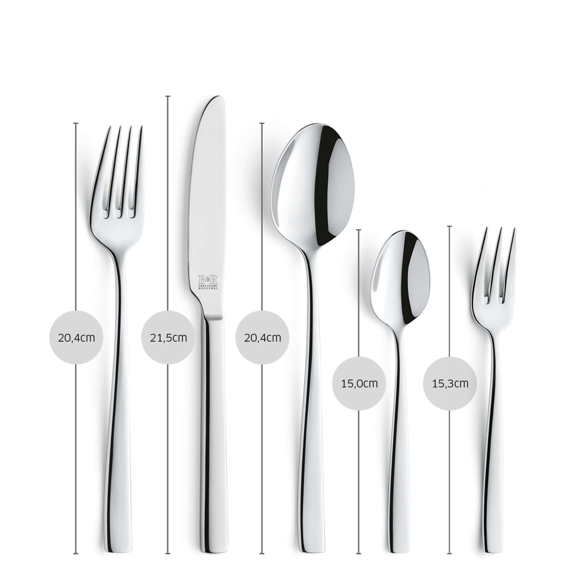 - Inhalt: 12 Kaffeelöffel, 12 Kuchengabeln, 12 Menügabeln, 12 Menülöffel, 12 Menümesser