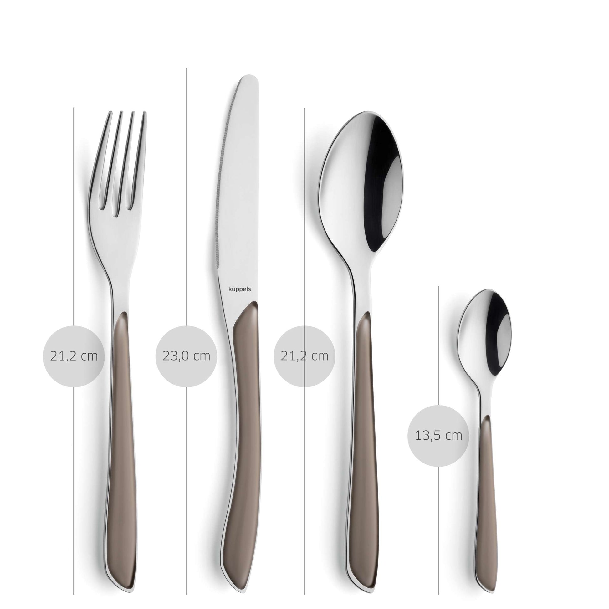 Die lebendigen Farben des PRISMA Besteckset 24-teilig kakao bringen Farbe und Stil auf Deinen gedeckten Tisch. Die elegant geformten Griffe setzen fröhliche Akzente und lassen sich wunderbar mit deinem Geschirr oder deiner Tischdeko kombinieren.