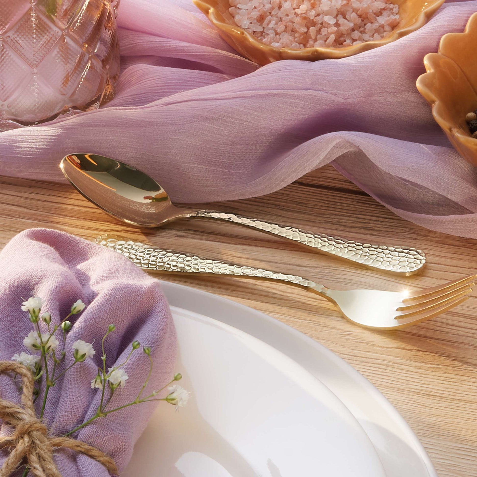- Crystal Champagner Besteckset – elegante Hammerschlag-Optik mit sanftem Schimmer