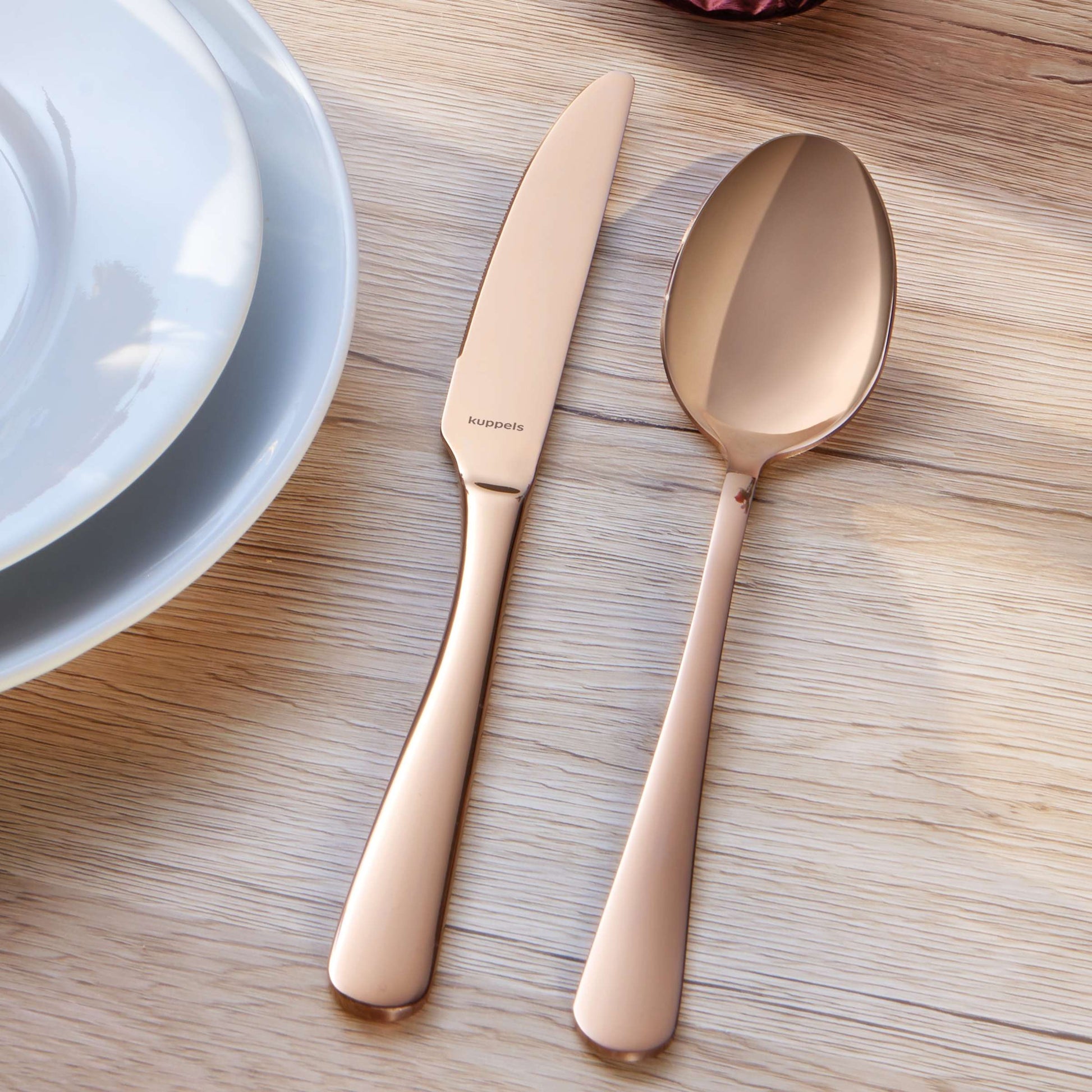 - hochglanzpolierter Edelstahl 18/0 mit PVD-Beschichtung in Rosé