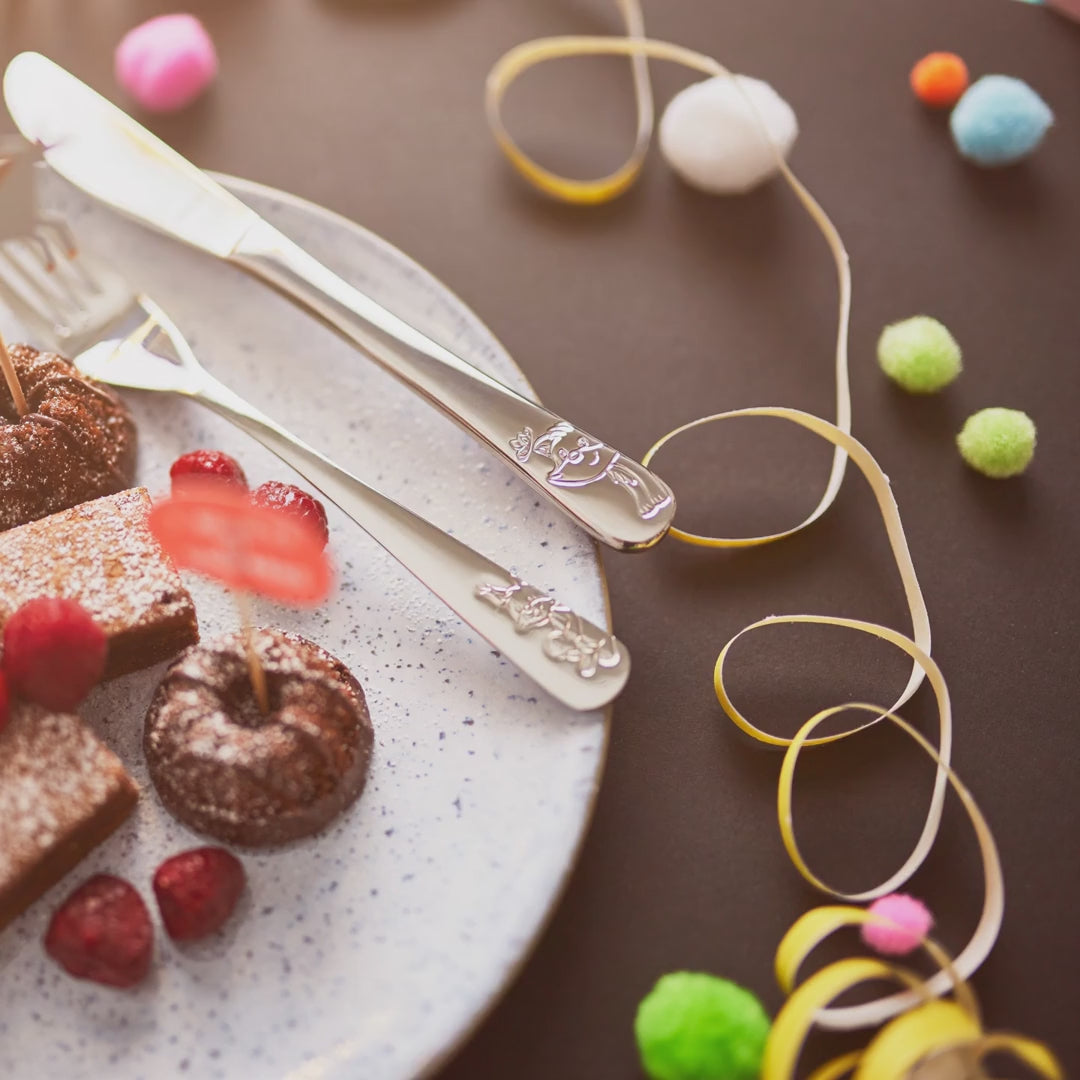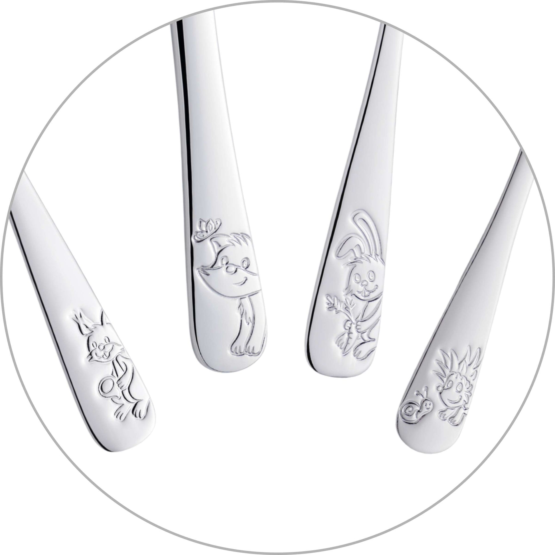 Waldfreunde Kinderbesteck-Set – 4-teilig mit geprägten Waldtier-Motiven