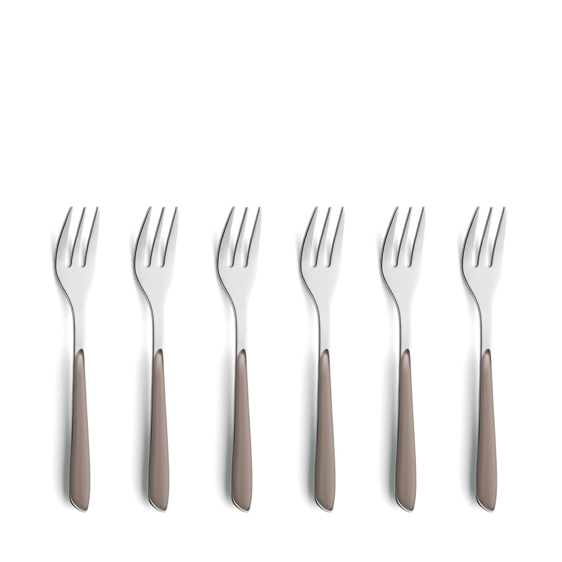 Das PRISMA Kuchengabel Set 6-teilig kakao bringt warme Farbtöne auf deinen Tisch. Die Edelstahlgabeln mit transparenten Griffen in Kakao sind perfekt für Kuchen, Torten und Desserts.