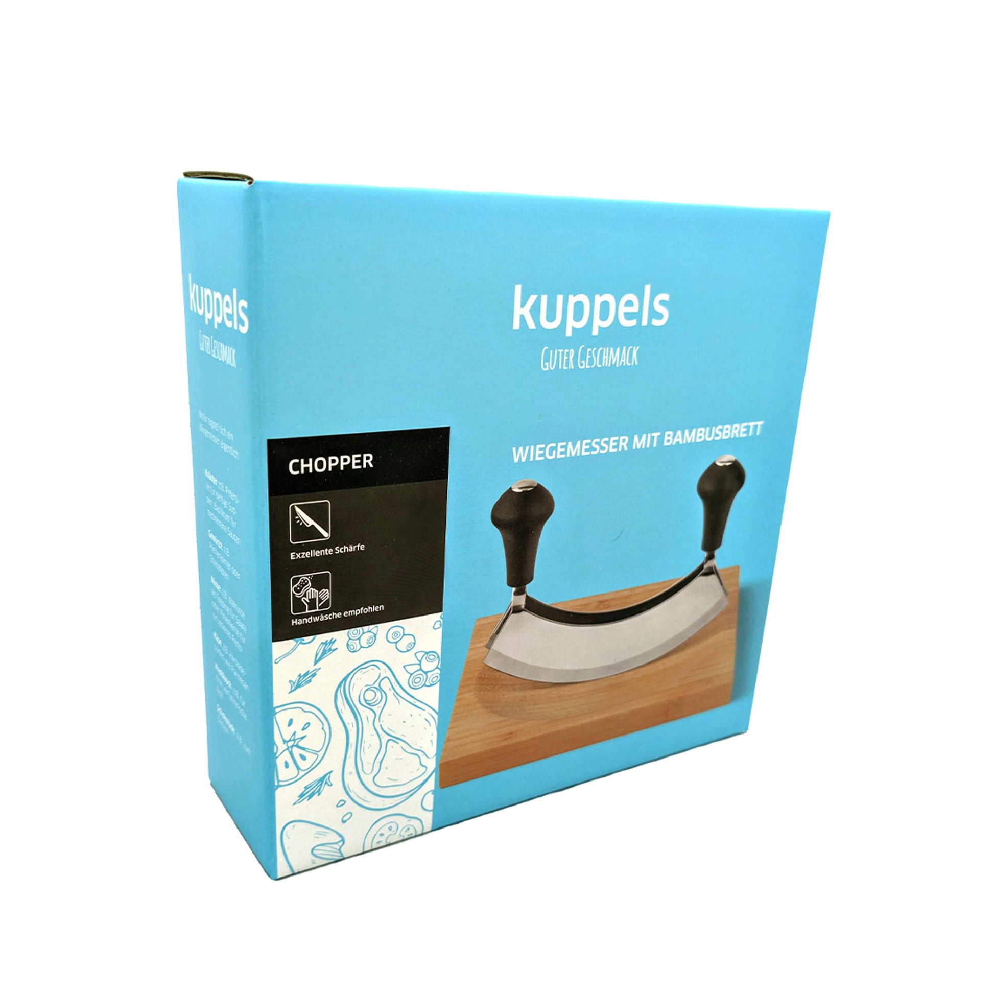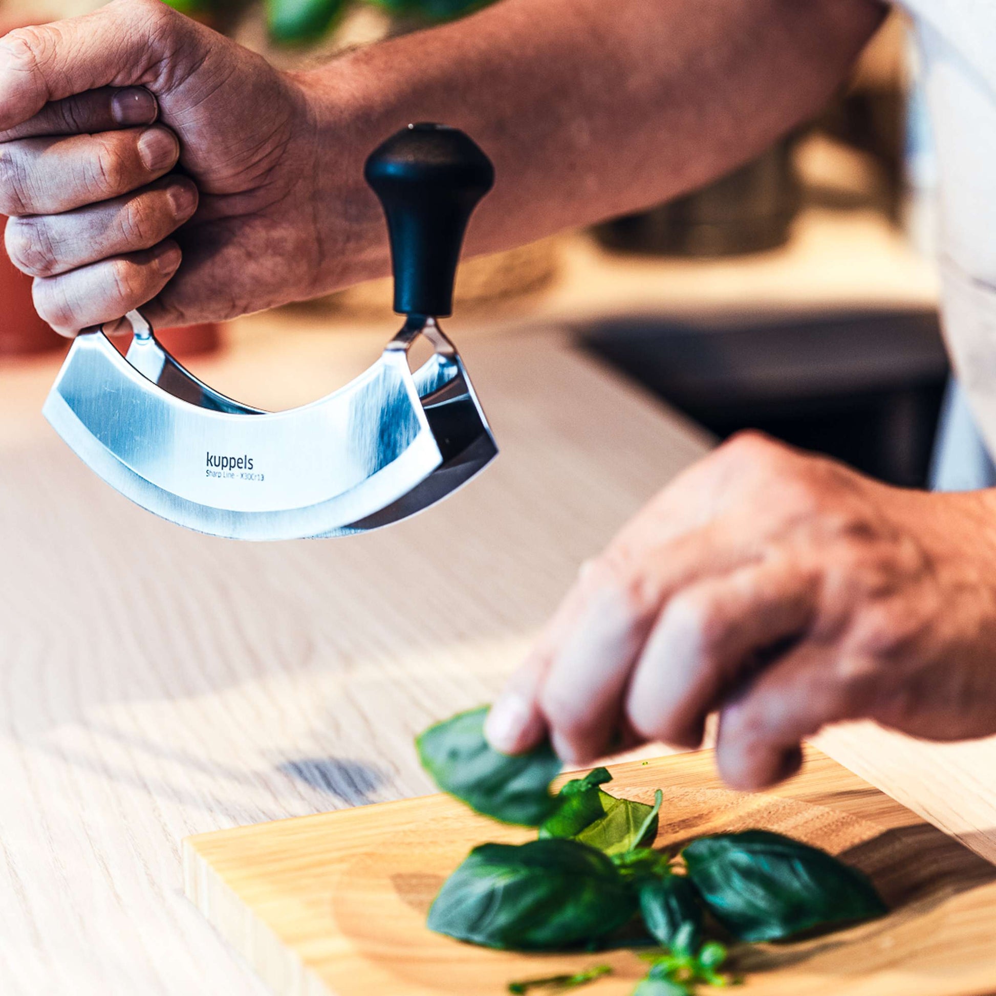 Das SHARP LINE EDITION Wiegemesser Set von Kuppels ist die perfekte Lösung für Kräuterliebhaber. Das Set besteht aus einem funktionalen Schneidbrett mit passender Wölbung und einem Wiegemesser mit Doppelklinge.