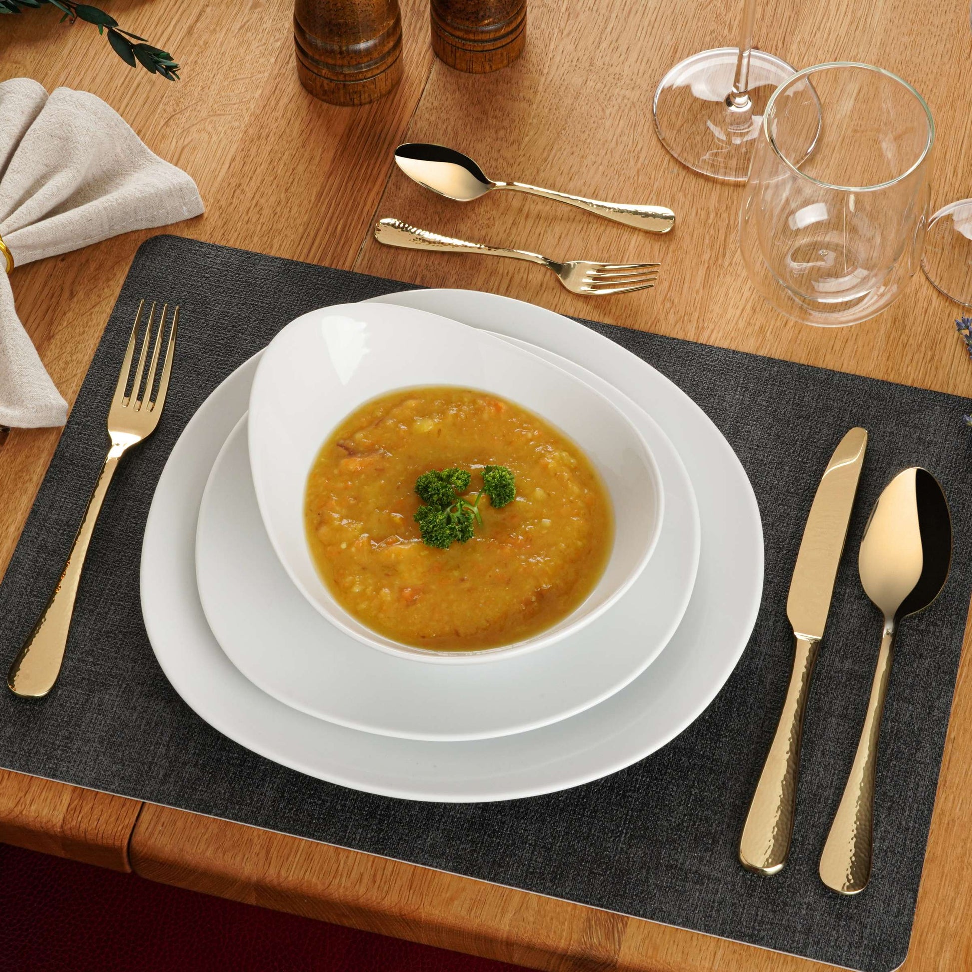 Das Besteckset Mondo im eleganten Hammerschlag-Design mit PVD-Veredelung in champagner vereint außergewöhnlichen Stil mit harmonisch anspruchsvollem Charme. Die glänzende Oberfläche und die elegant gehämmerten Griffe der Besteckserie Mondo schaffen eine moderne und ansprechende Symbiose. Optisch und haptisch perfekt ausbalanciert, besticht dieses Besteck durch klare Konturen und anmutige Proportionen.