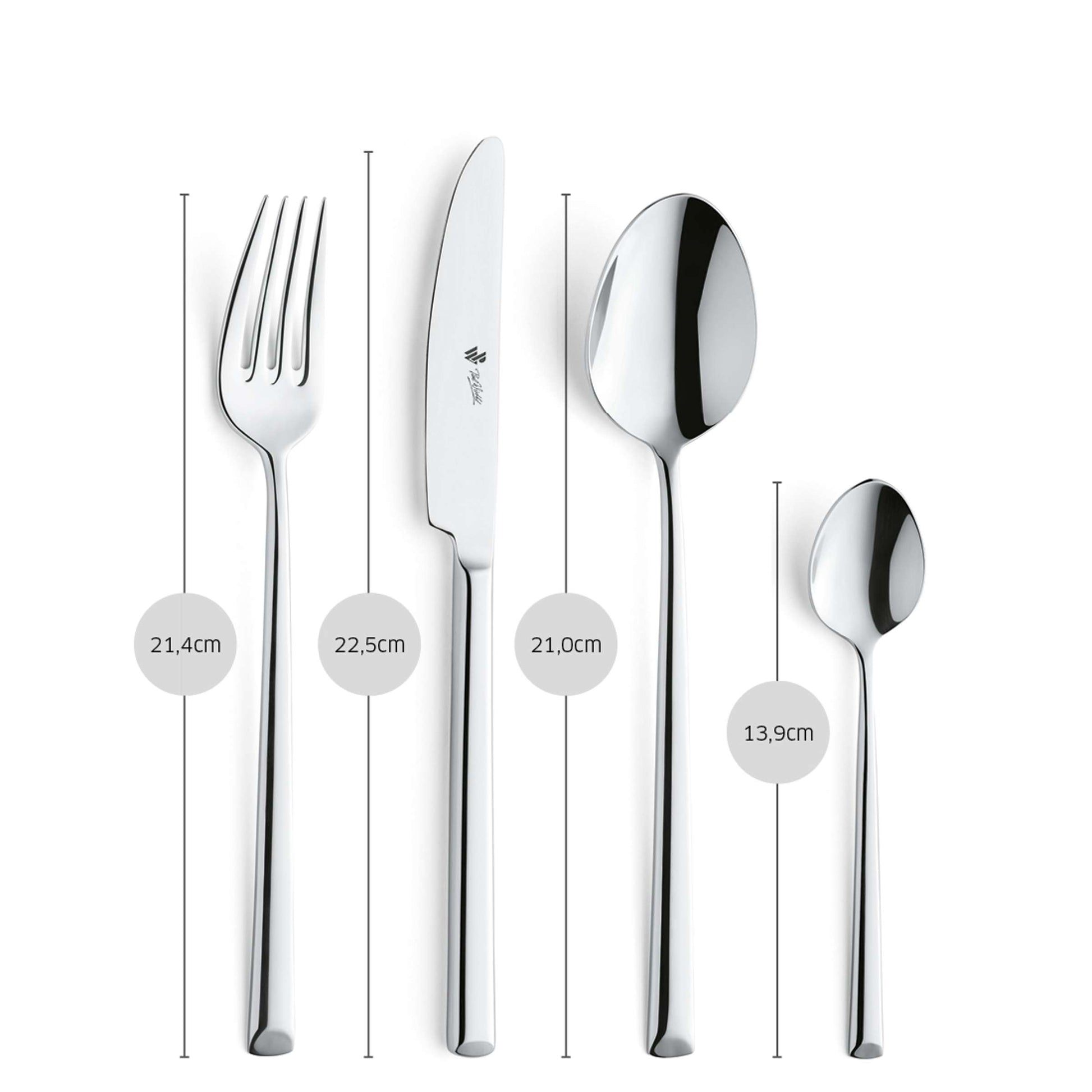 - Inhalt: 6 Kaffeelöffel, 6 Menügabeln, 6 Menülöffel, 6 Menümesser