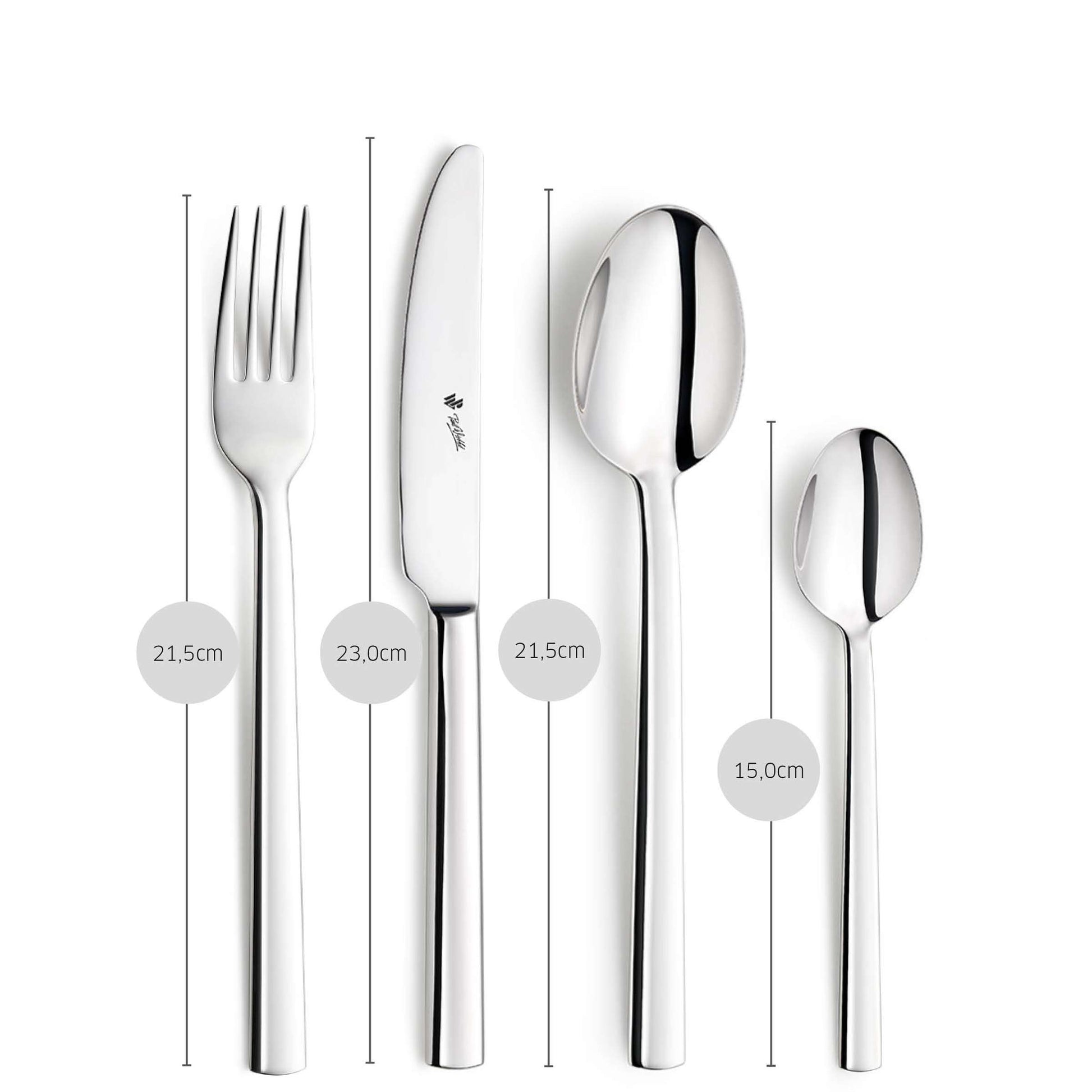 - Inhalt: 6 Kaffeelöffel, 6 Menügabeln, 6 Menülöffel, 6 Menümesser