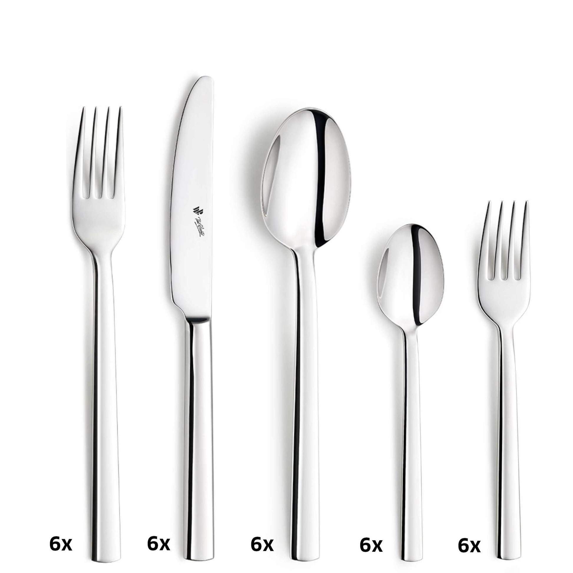 - Inhalt: 6 Kaffeelöffel, 6 Kuchengabeln, 6 Menügabeln, 6 Menülöffel, 6 Menümesser