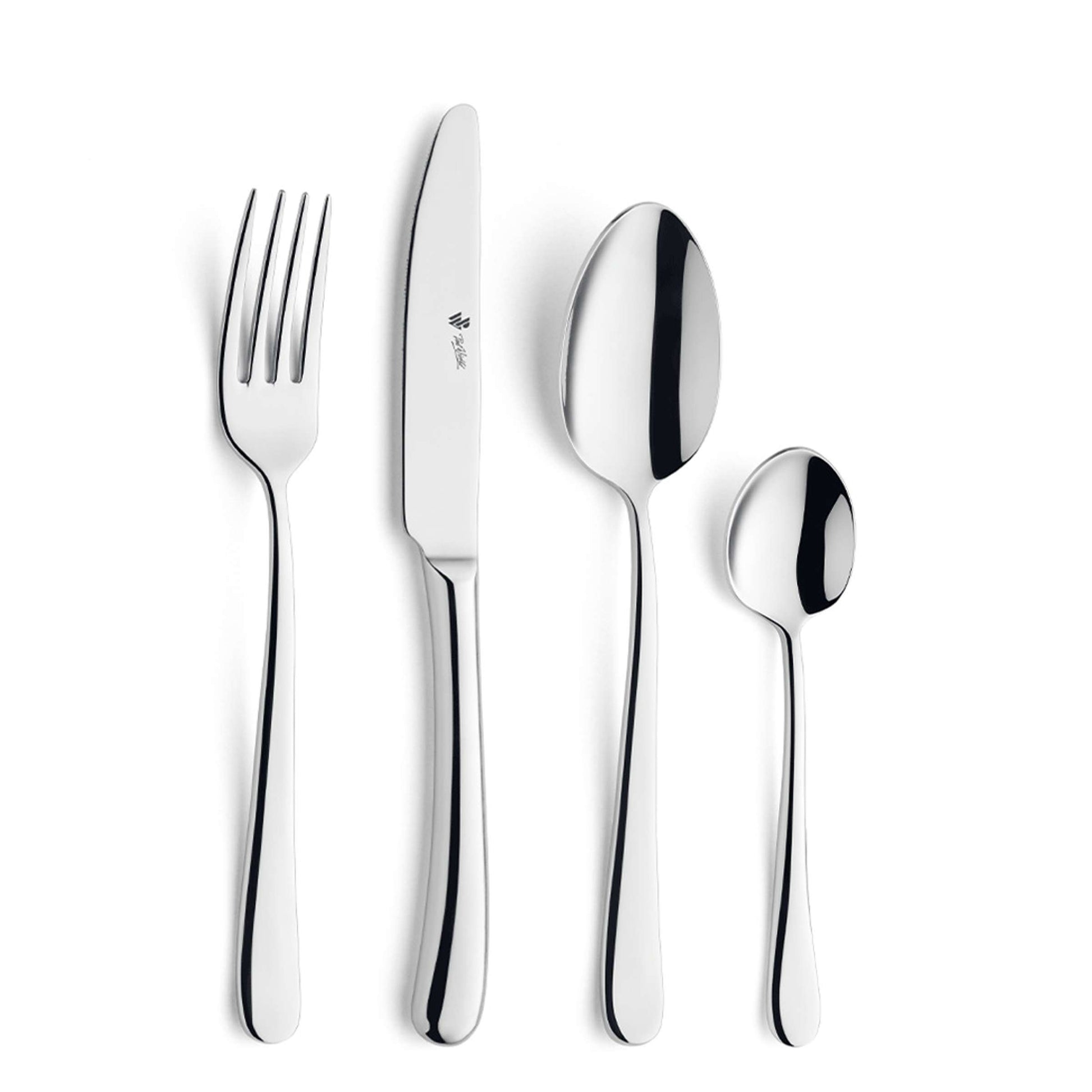 BLUES verleiht deinem Esstisch dank seiner dezenten Formgebung und schlichten Geometrien einen harmonischen, wertigen Charme. Das leicht geschwungene, ausbalancierte Messer präsentiert sich mit besonderer Leichtigkeit und gleichzeitig positiv auffallender Wertigkeit. Die Wertigkeit wird durch die hochwertige Qualität dieses Kinderbestecks beim Dinieren bestätigt. Denn das Kinderbesteck liegt besonders angenehm in der Hand und zeichnet sich durch kinderleichte Handhabung aus. Das freundliche Aussehen lässt sich mit unterschiedlichen Porzellanformen und Dekorationen wunderbar kombinieren und sorgt für besonderes Vergnügen am gedeckten Tisch. Für Klein und Groß.